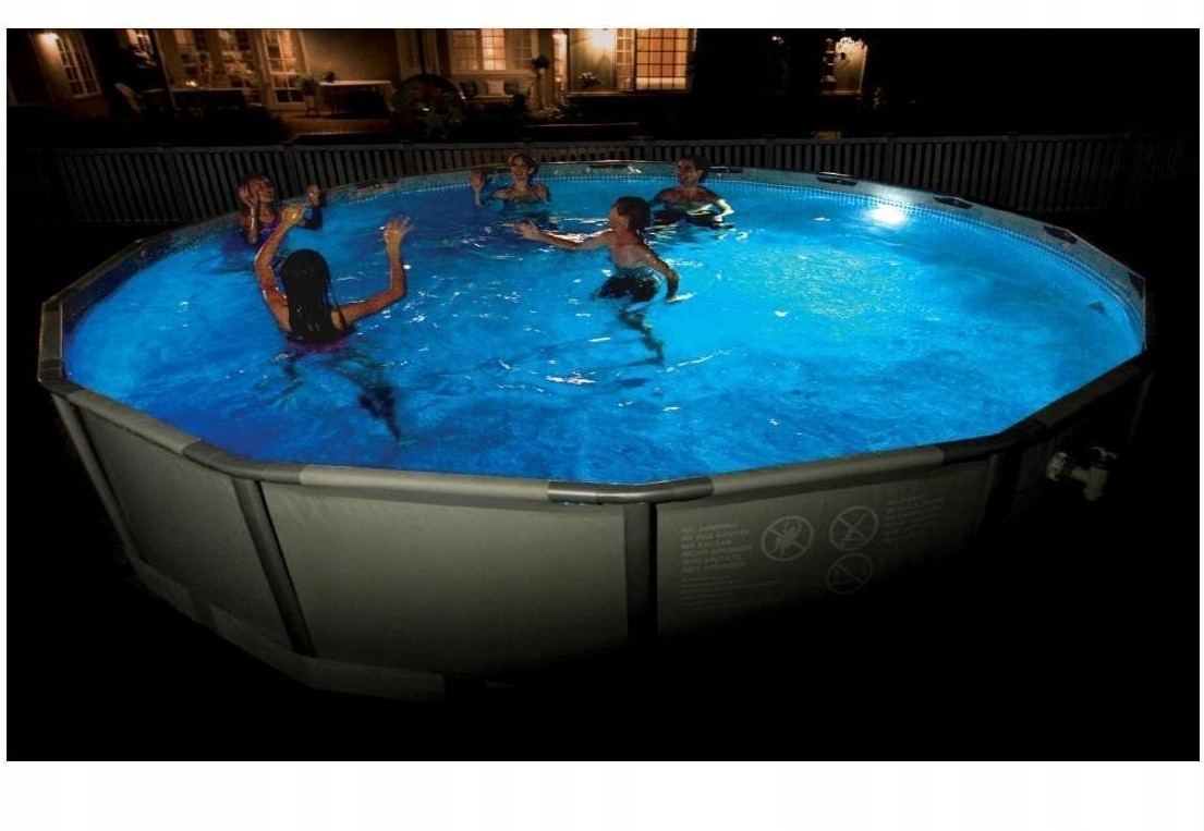 Освещение садового бассейна теплым летним вечером превращается в детскую игру благодаря магнитной многоцветной светодиодной лампе от INTEX.