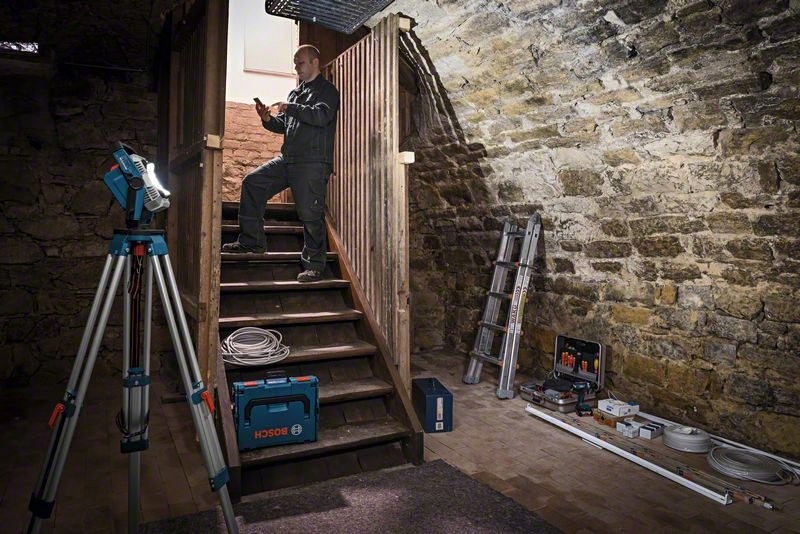 GLI 18V-2200 C Professional — универсальная и долговечная рабочая лампа Bosch с классом напряжения 18. V. Эффективный светодиод обеспечивает световой поток до 2200 люмен и, следовательно, лучшее освещение. Устройство защищено от пыли и брызг благодаря прочной крышке аккумуляторного отсека (уровень защиты IP 64). Удобное управление через смартфон позволяет быстро и легко регулировать освещение. Инструмент имеет две настройки яркости, пять настроек угла наклона и резьбу для штатива 5/8", что позволяет быстро адаптироваться к любой рабочей ситуации. Лампа прекрасно освещает всю рабочую зону в течение всего дня. Изделие совместимо со всеми моделями Bosch 18 В. профессиональные аккумуляторы (профессиональная система Bosch 18 В).
