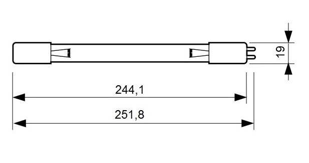 Излучатель UV-C TUV мощностью 11 Вт (диаметр люминесцентной лампы Т5) - 16 мм), с односторонним 4-контактным цоколем с маркировкой 4P-SE (4P SE).