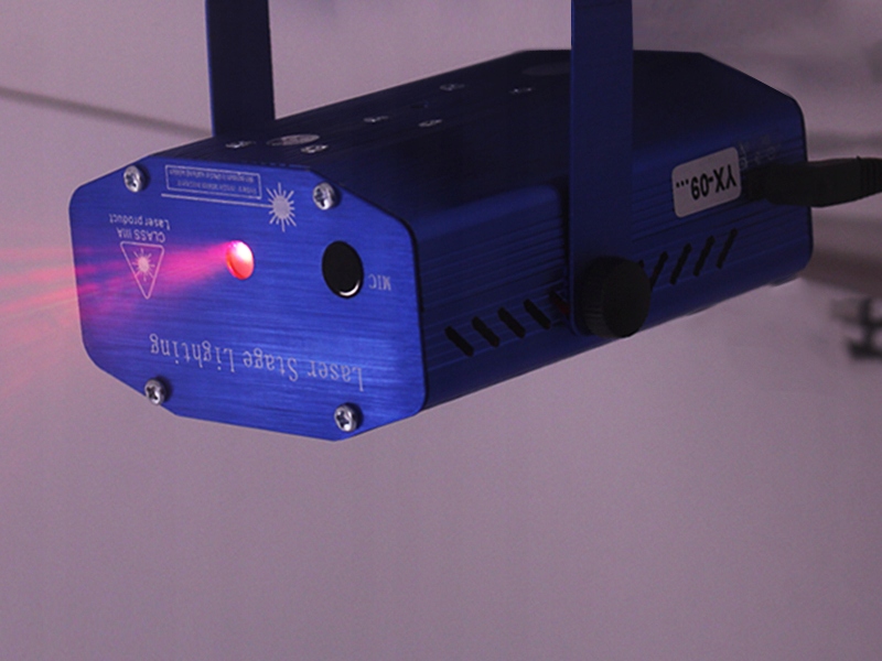 Базовый DMX управляет режимом освещения! Встроенный микрофон заставляет лазерный свет мигать в такт музыке. Кнопкой, расположенной на задней части корпуса, переключите режим на «музыку» и наведите лазер на источник звука!