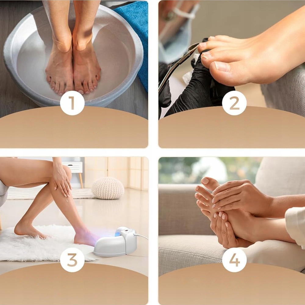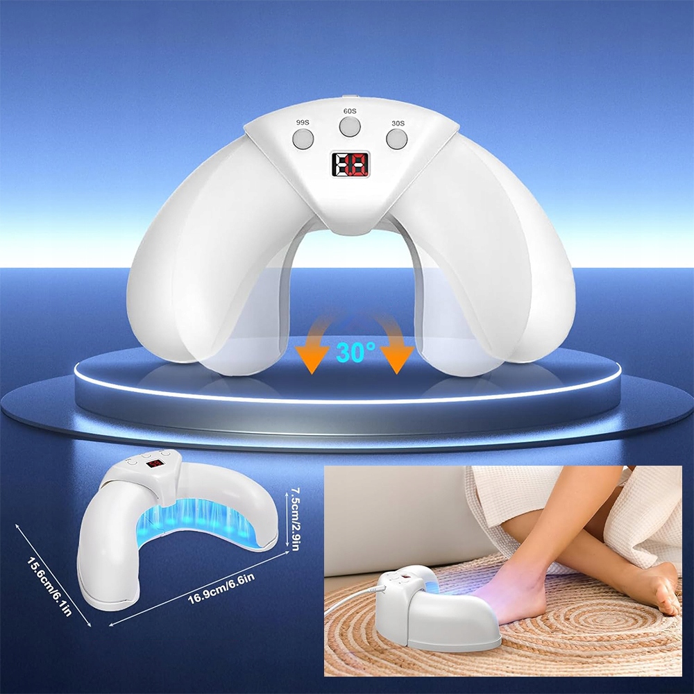 Лампа для чистки ногтей проста в использовании и перезаряжается. Наша новейшая лампа для чистки ногтей имеет три режима настройки времени на выбор (30 с/60 с/90 с). Выберите подходящее время, а затем поместите руку или ногу в устройство. Перед использованием вымойте руки или ноги и подстригите ногти до нужной длины.