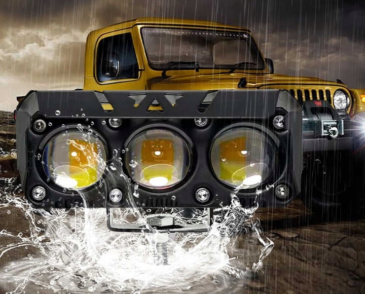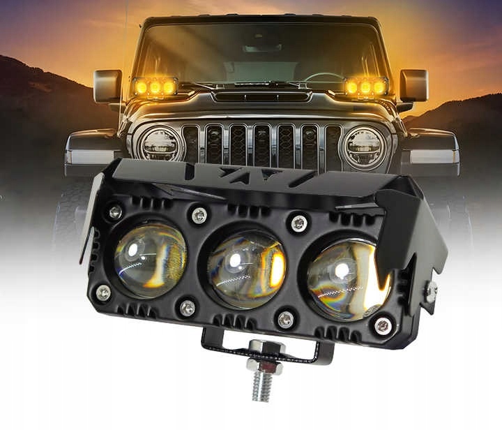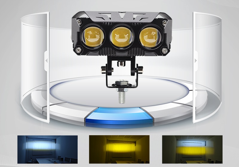 МОТОЦИКЛОВАЯ РАБОЧАЯ ЛАМПА ГАЛОГЕННАЯ QUAD LED ДВОЙНАЯ 2 ЦВЕТА СВЕТА 60Вт 2шт.