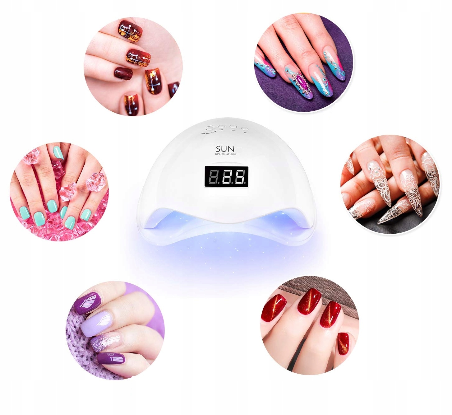 - ВЫБОР ВРЕМЕНИ ЗАКАЧИВАНИЕ – лампа имеет 4 варианта время затвердевания геля: 10 с, 30 с, 60 с и 99 с, благодаря чему мы можем адаптировать режим работы к собственным потребностям и требованиям; встроенный дисплей и таймер.