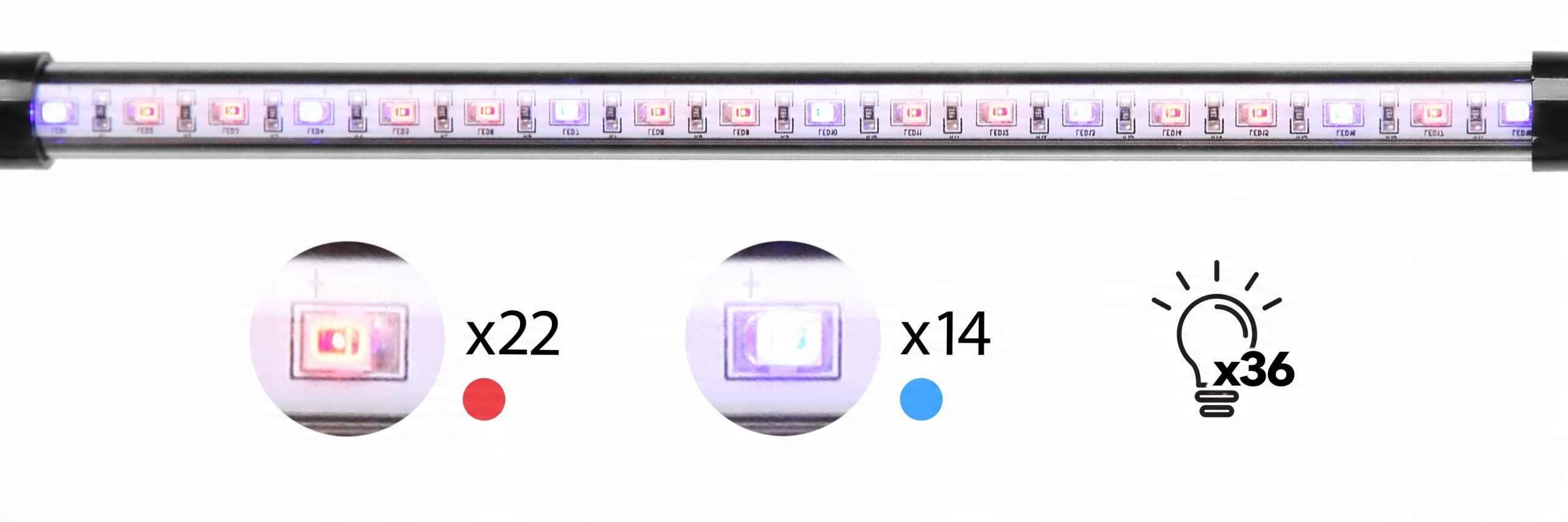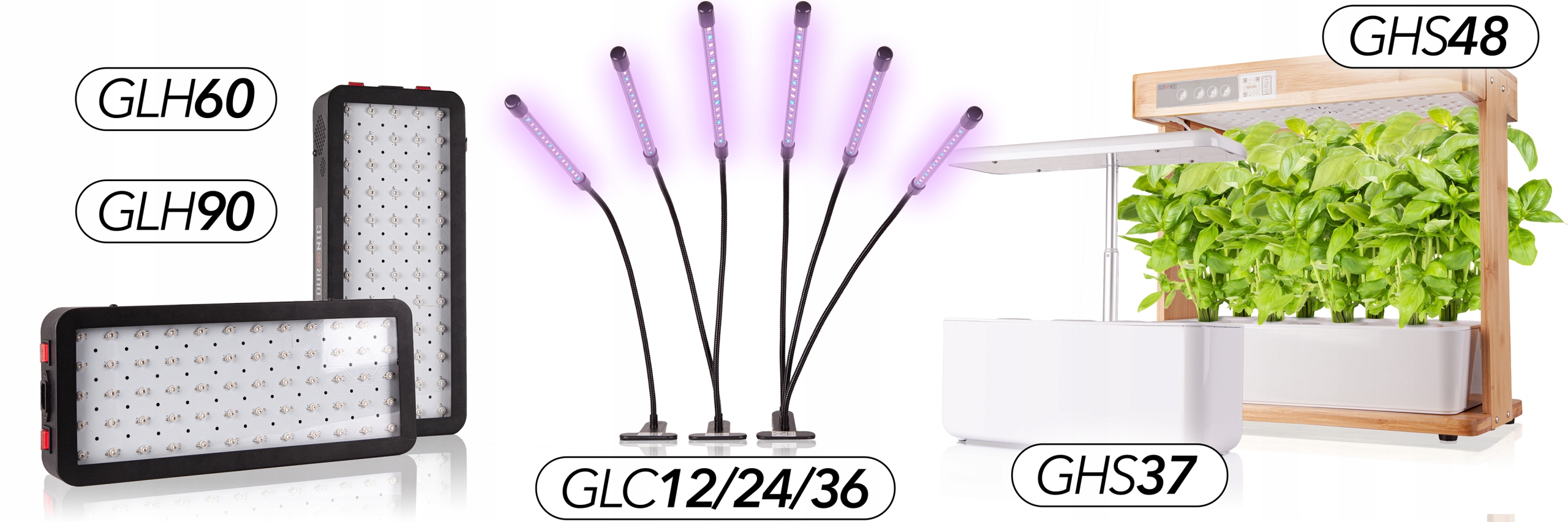 Лампа использует наиболее благоприятный для процесса фотосинтеза спектр волн: красный свет (660 нм) и синий свет (450 нм). Одинарный кронштейн состоит из 18 светодиодных ламп (11 красных и 7 синих). В зависимости от модели лампа состоит из одного (GLC12), двух (GLC24) или трех плеч (GLC36). Длины волн света, которые он излучает, аналогичны естественному солнечному свету, что способствует здоровому росту и развитию растений.