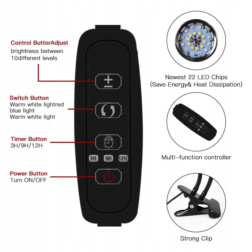 [Профессиональный дизайн полного спектра] — оснащен 44 светодиодами: 12 красных + 12 синий + 20 желтый, он похож на естественный солнечный свет и идеально подходит для всех видов комнатных растений на всех стадиях роста, лучший подарок для ваших любимых растений зимой...