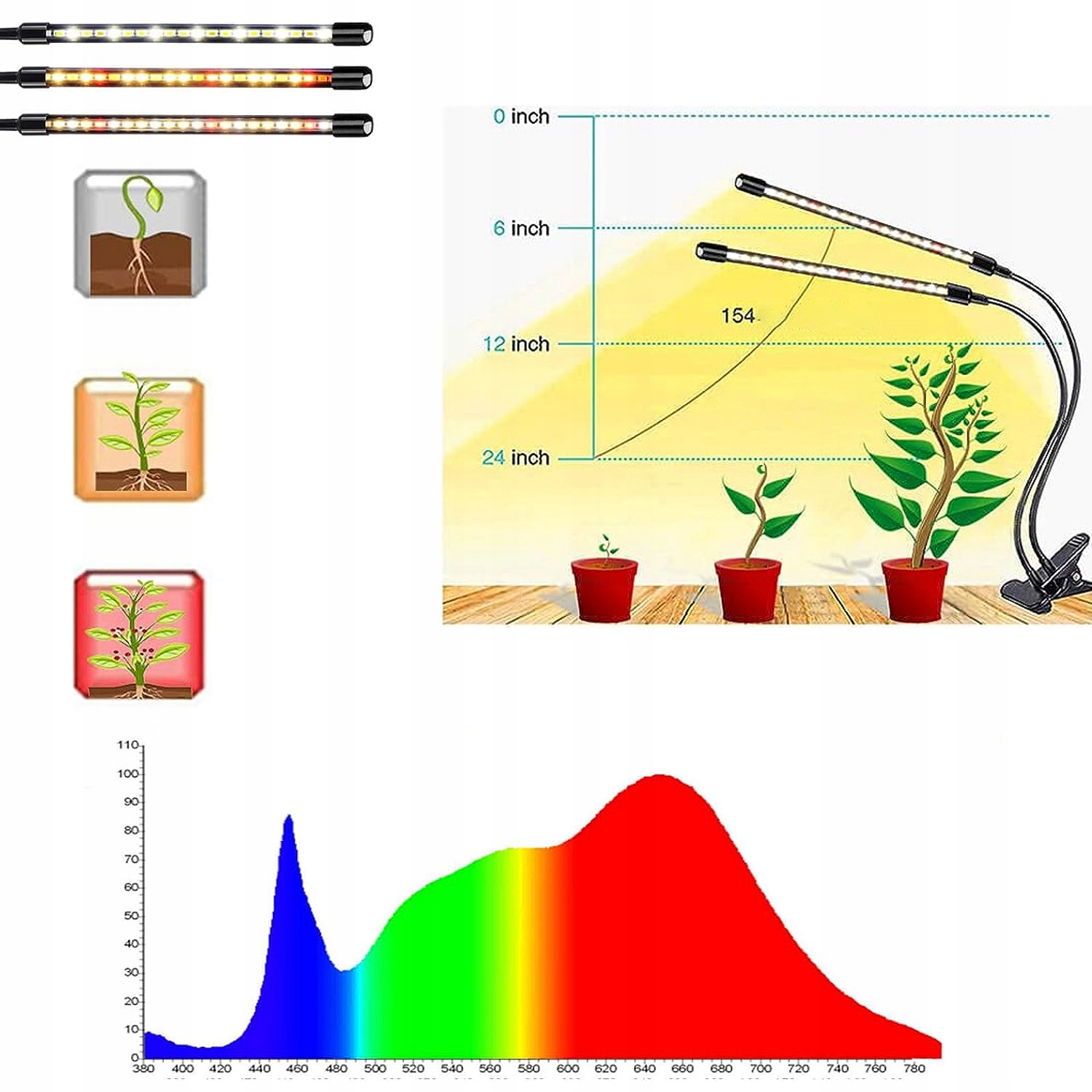 - Этот светильник для выращивания растений включает в себя теплый свет 3000 К, белый свет 5000 К и красные светодиоды с длиной волны 660 нм.
