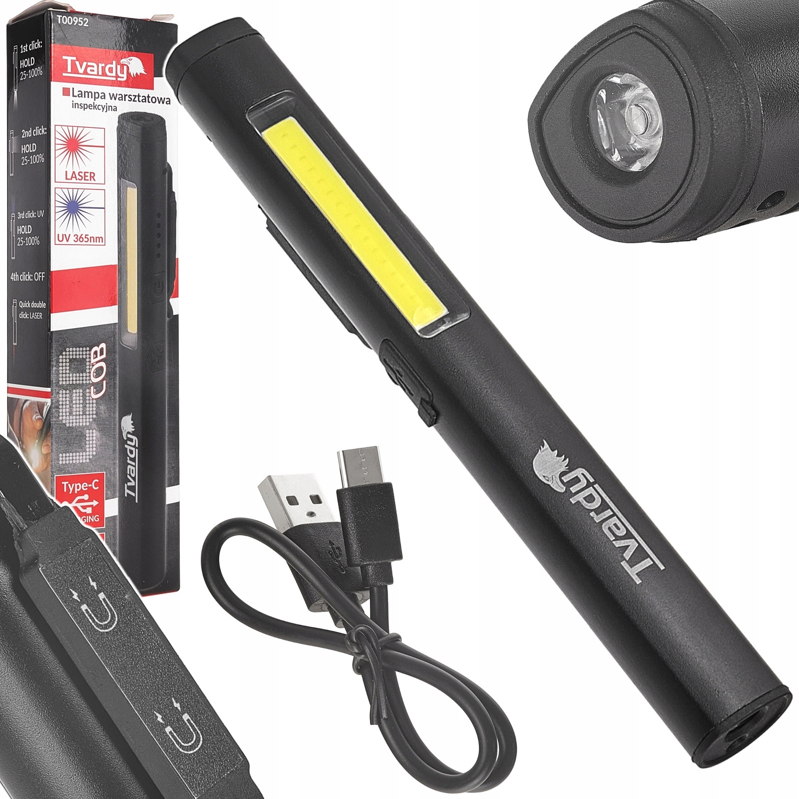 ЛАМПА ІНСПЕКЦІЙНА МАЙСТЕРНЯ З МАГНІТОМ COB LED 5W UV LASER 800mAh 400lm