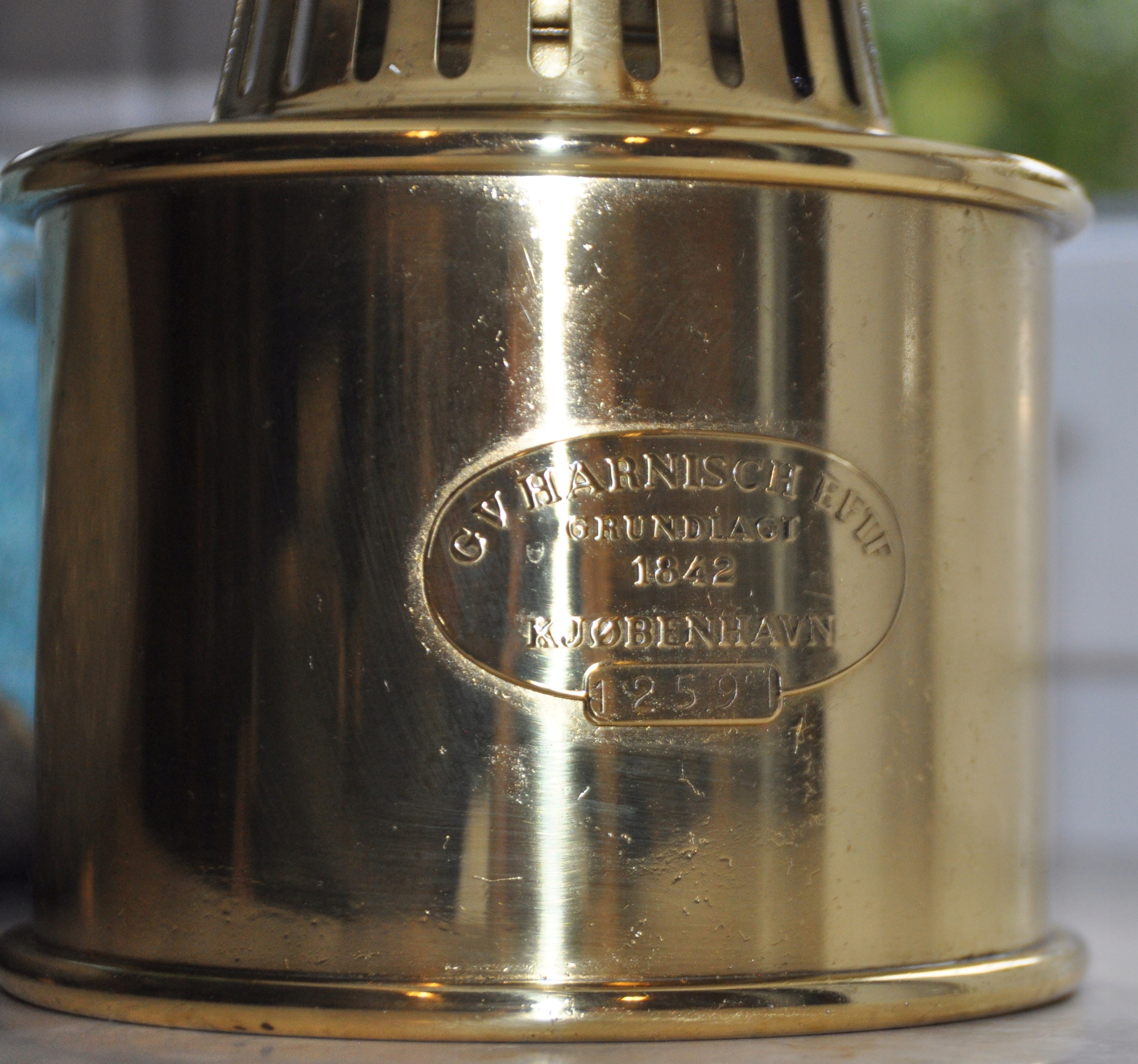 Судовая масляная лампа Г.В. Harnisch Дания Абажур Holmegaard. Серия №. 12591.