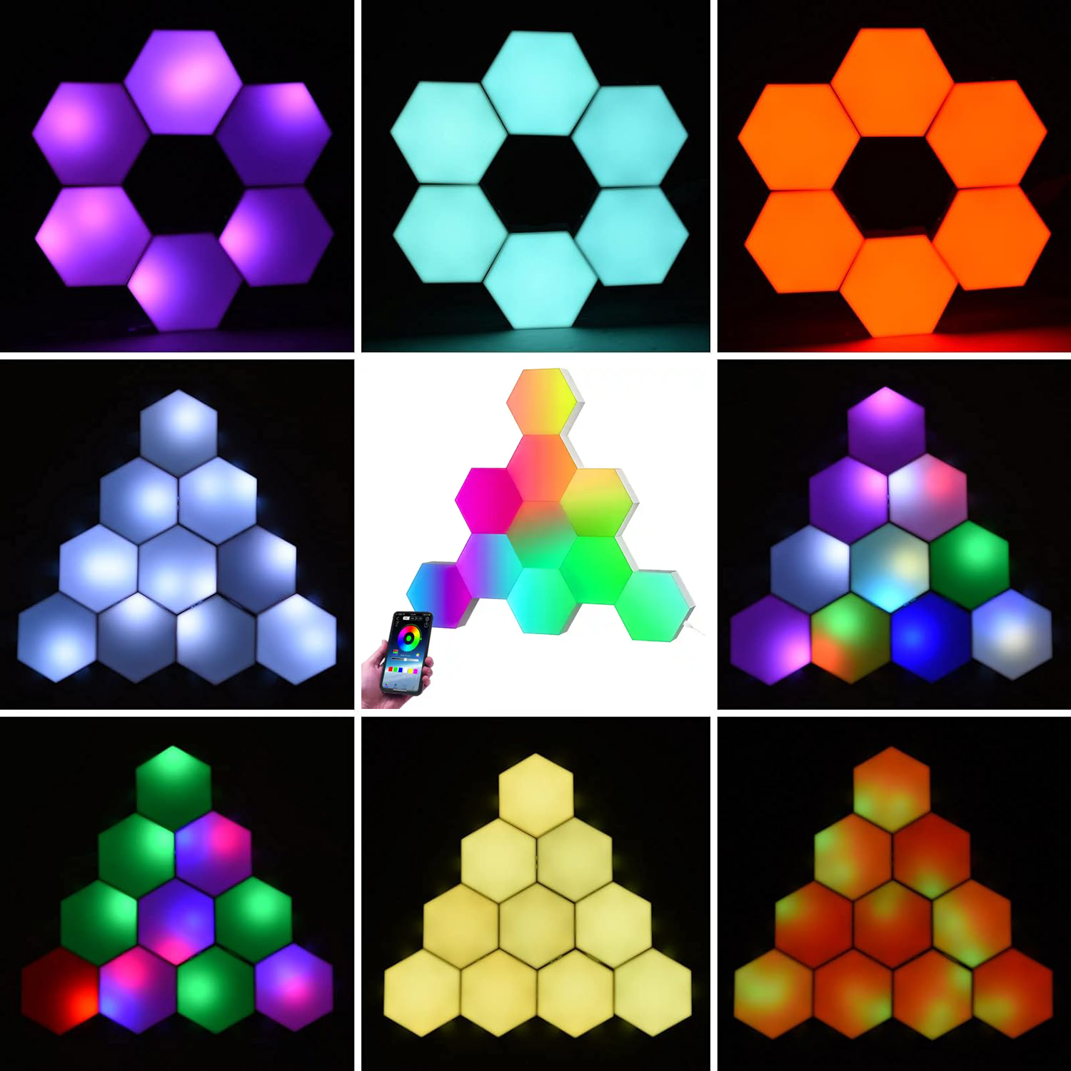 LAMPA LAMPKA HEXAGON PLASTER MIODU APLIKACJA RGB