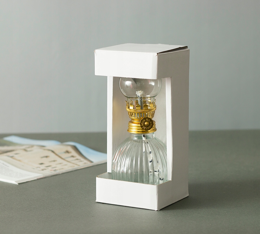 - Масляная лампа, изготовленная из качественного металла и стекла.