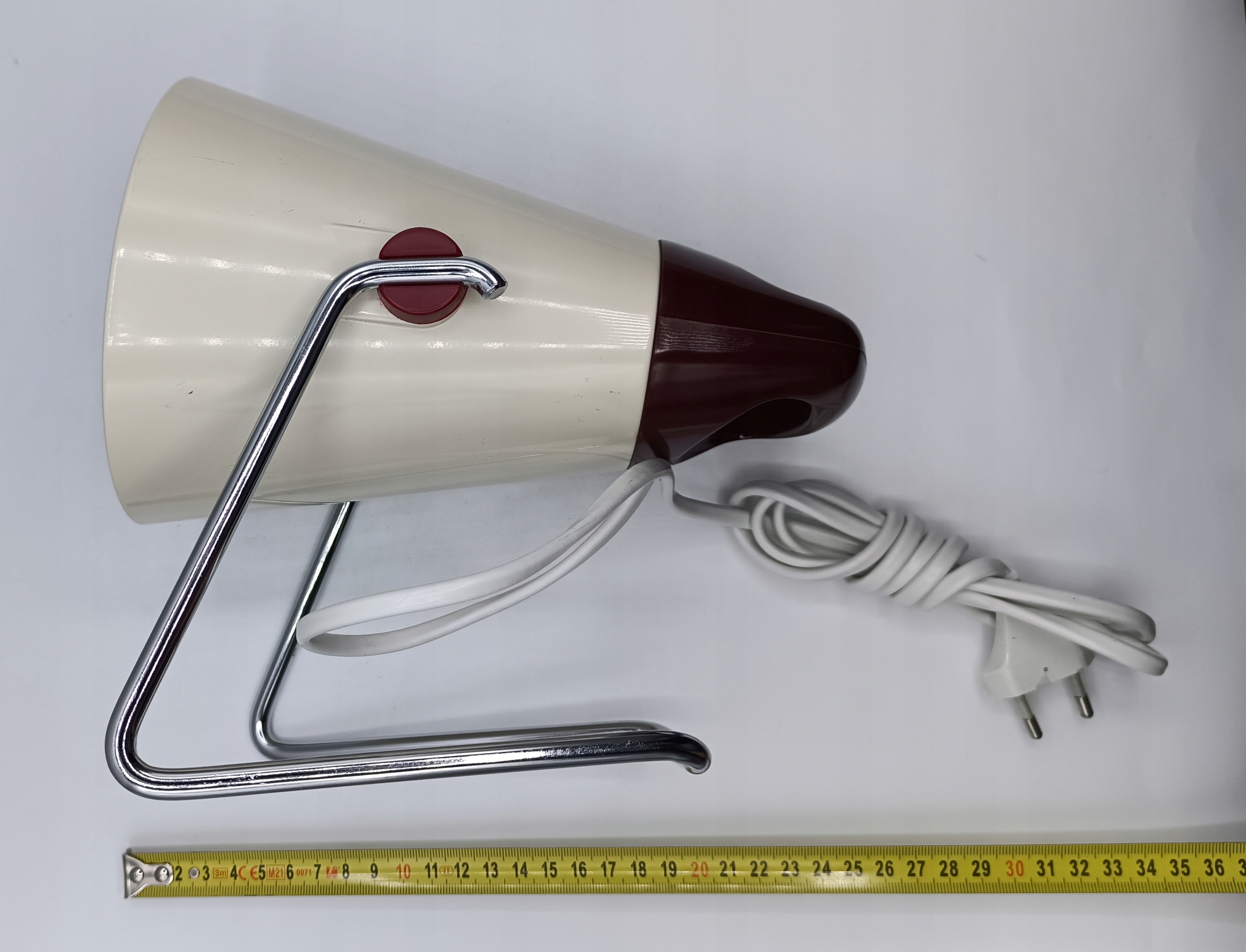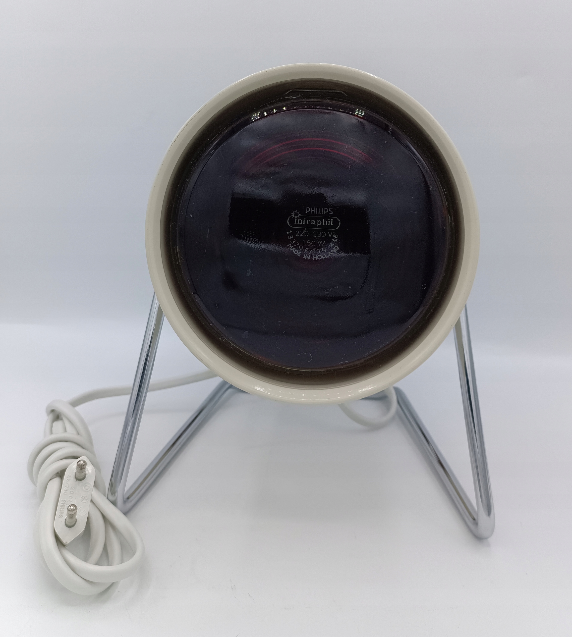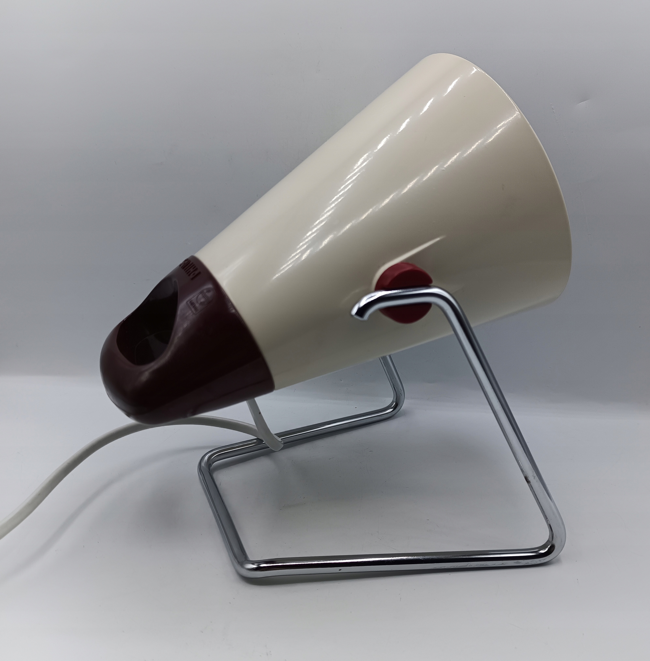 - Медицинская лампа Phillips Infraphil, разработанная в 1960 -х годах Шарлоттой Перрианд для Филлипса, инфракрасной нагревательной лампы с оригинальной лампочкой Phillips Infrapehil 150W. Хорошая, декоративная модель в стиле ар -деко со стальной основой и двухкоронувшим металлическим и бакелитным обстановкой. Он подвижен, поэтому вы можете отрегулировать угол освещения лампы.