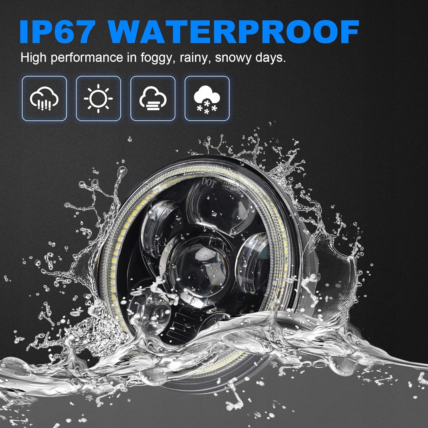 - 【Самый высокий и долговечный материал】, изготовленный из алюминиевого корпуса с черной и ПК, окрашенной в штук, устойчивой к ударам и вибрациям, обеспечивает максимальную защиту светодиодной фары от малого истирания и незначительных царапин. Пыльенный и водонепроницаемый IP67. Тепло радиатора, обеспечивающая эффективное охлаждение, увеличивает срок службы до более чем 50 000 часов.