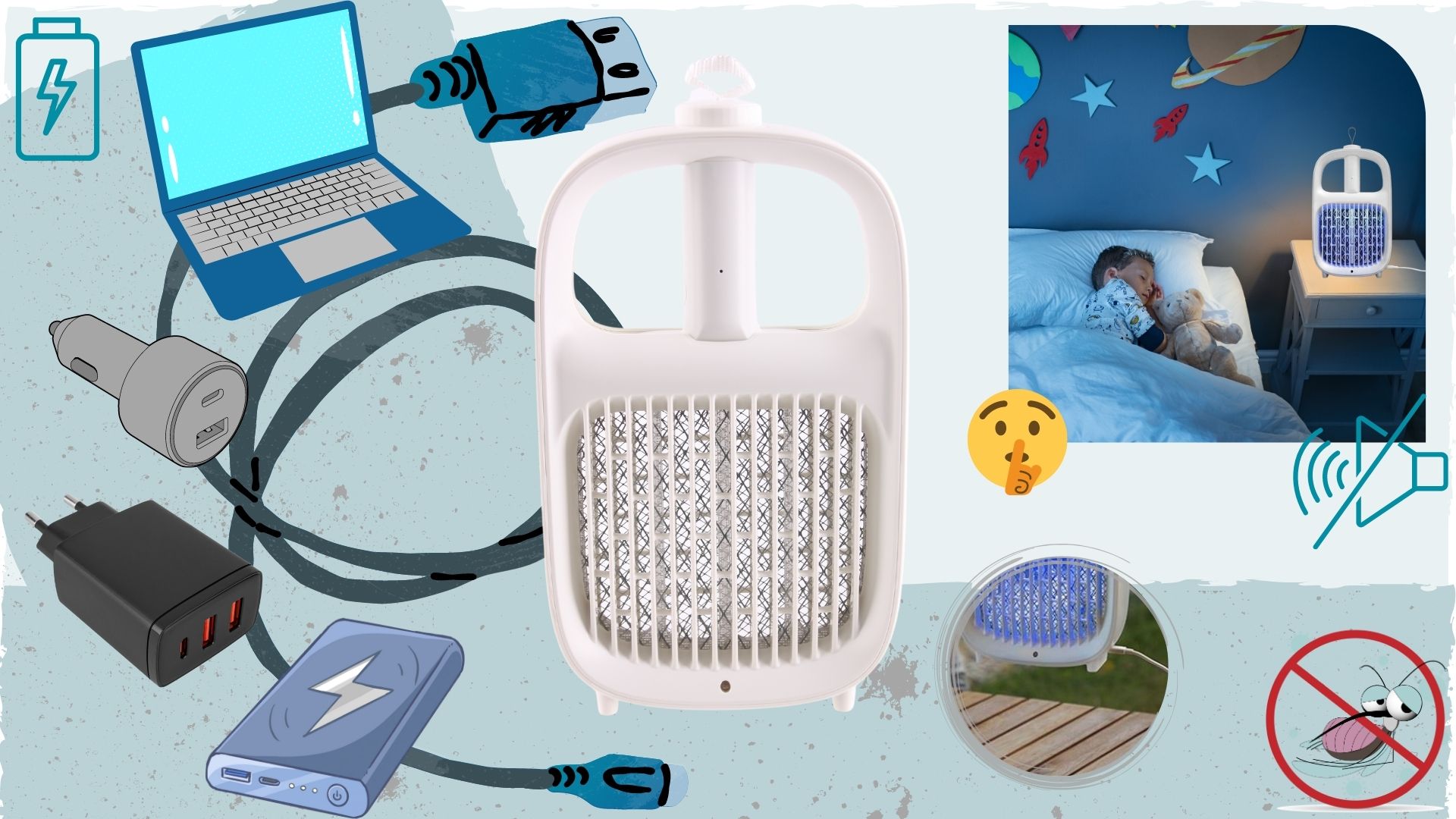 - ✅Метод борьбы с комарами: Активный + пассивный (как лампа или как мастерок)