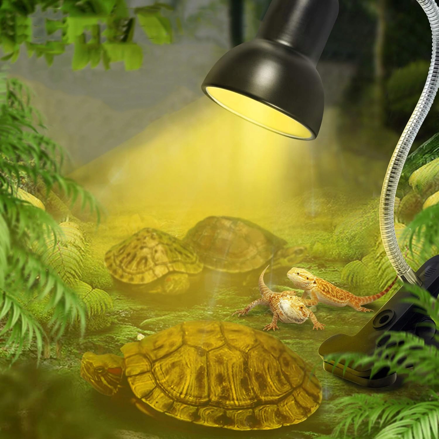 - Диммер позволяет регулировать яркость и температуру, а расстояние до головки лампы можно регулировать в соответствии с потребностями ваших рептилий в разное время.