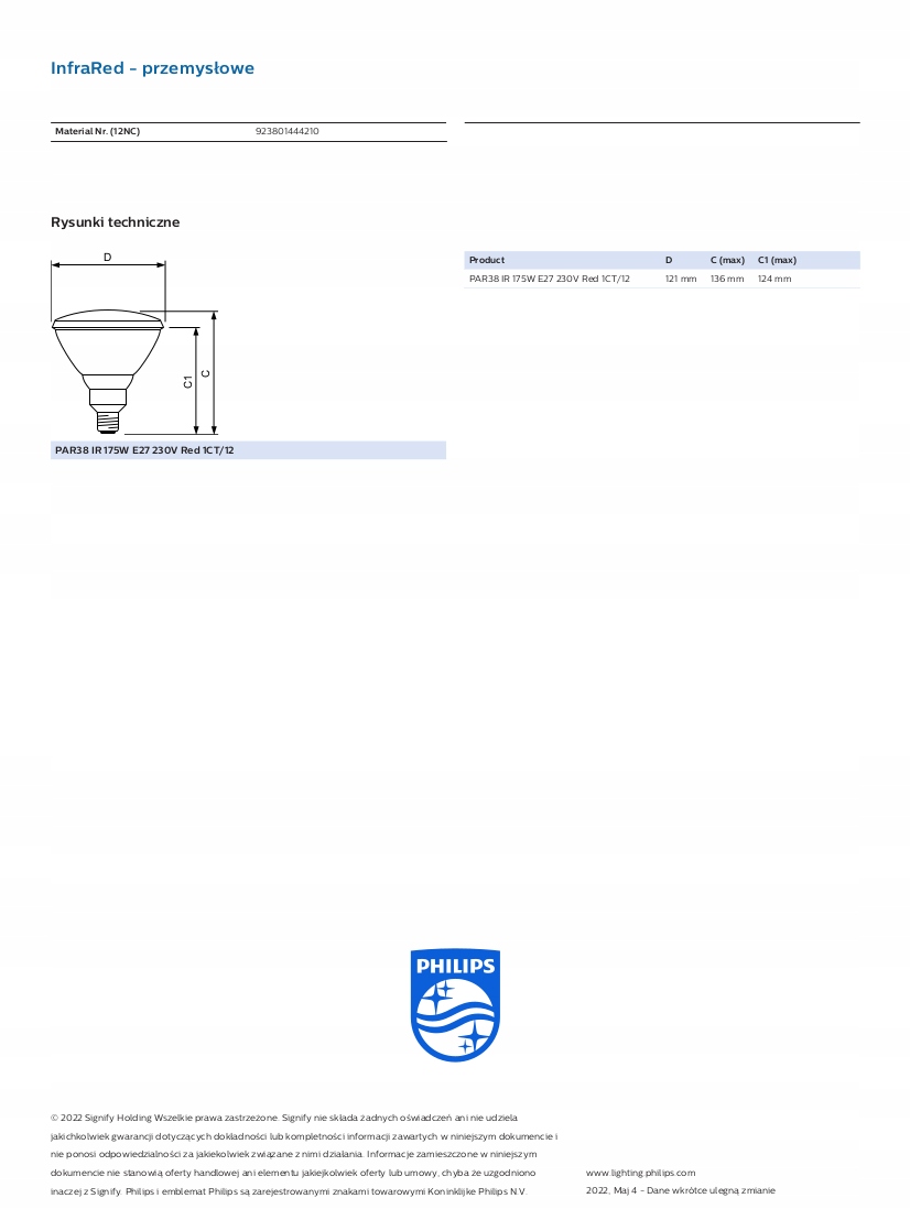Лампа обігріву променевою теплою лампою 175W RED