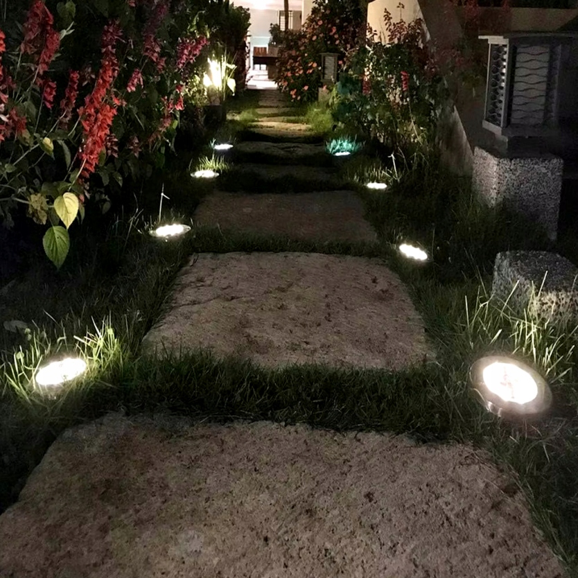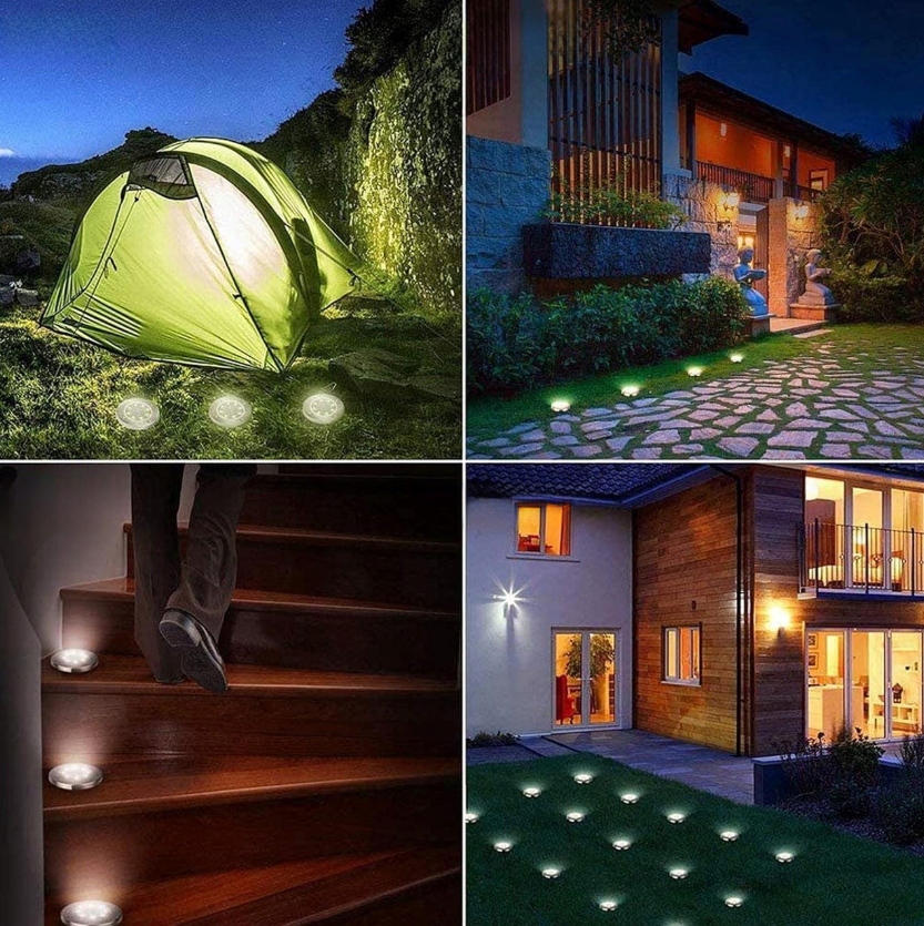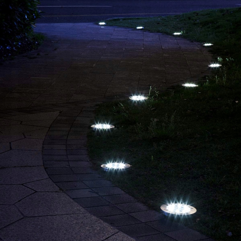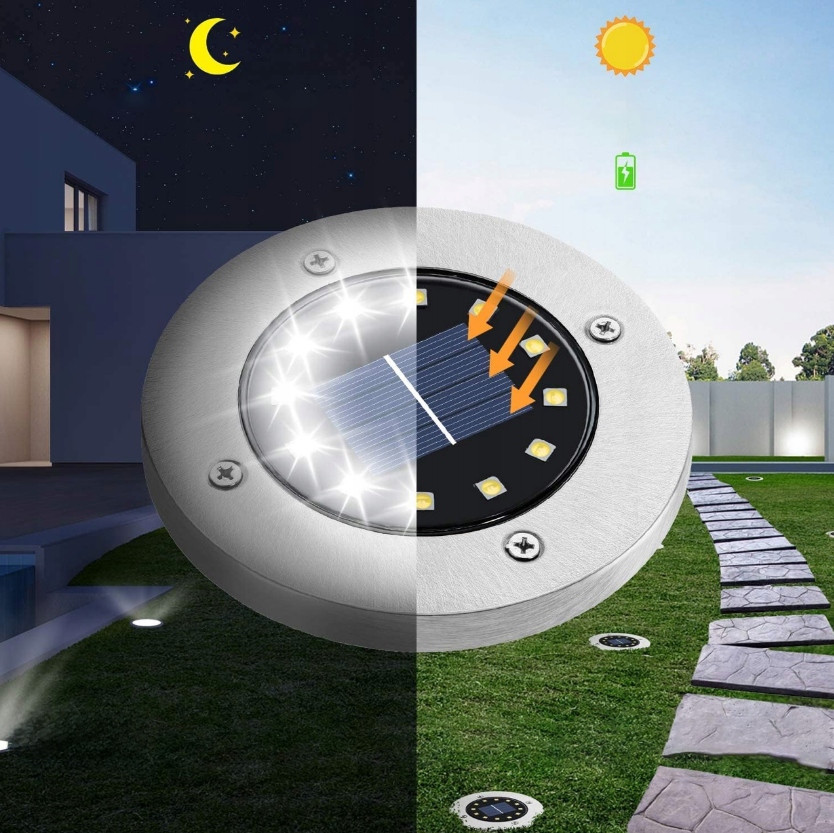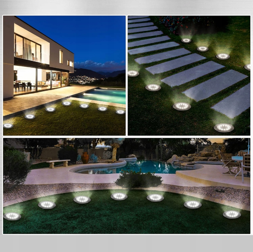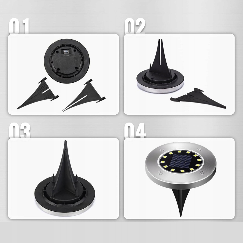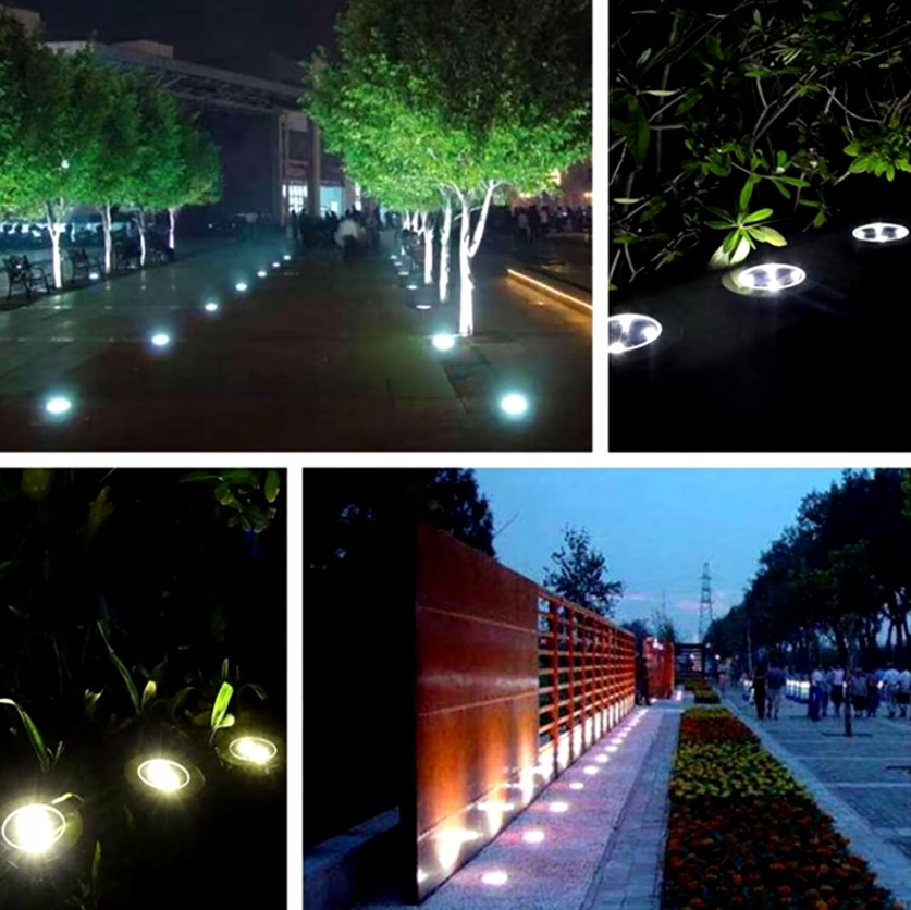 Lampa Ogrodowa Solarna LED Lampki Gruntowe 4x LED Dyski Czujnik Zmierzchu