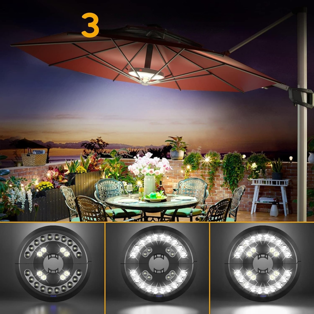 ⭐ Светильник для садового зонта, 28 светодиодов | 3 режима освещения, USB, сад и терраса