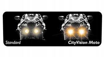Для повышения безопасности и видимости на дороге компания Philips разработала лампы CityVision Moto, которые создают в фарах характерный, привлекательный оранжевый эффект. Кроме того, лампы CityVision Moto излучают на 40 % больше света, что обеспечивает видимость на большем расстоянии.