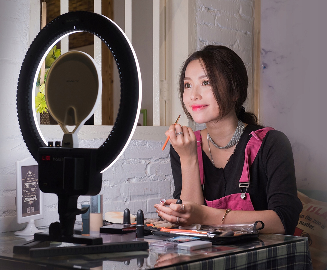 Светодиодный кольцевой светильник NanLite Halo обеспечивает привлекательный, мягкий, почти бестеневой свет с интересными кольцеобразными отражениями в глазах объекта. Идеально подходит для изучения техник макияжа, видеоблогов, освещения для фотографий, видеоосвещения, фотобудок и многого другого.