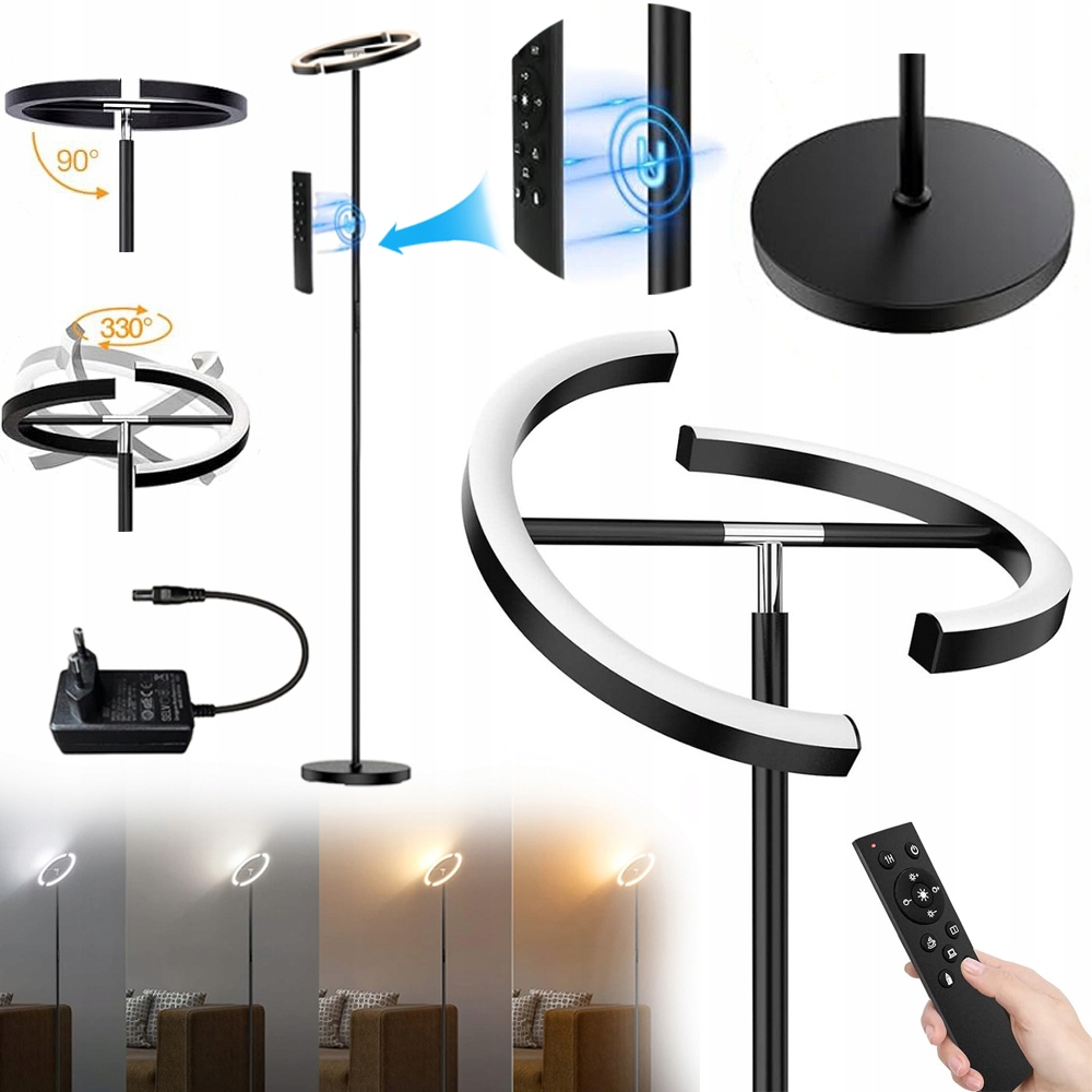 LAMPA PODŁOGOWA LED DOUBLE C CZARNA Z DOTYKIEM MAGNETYCZNYM I PILOTEM