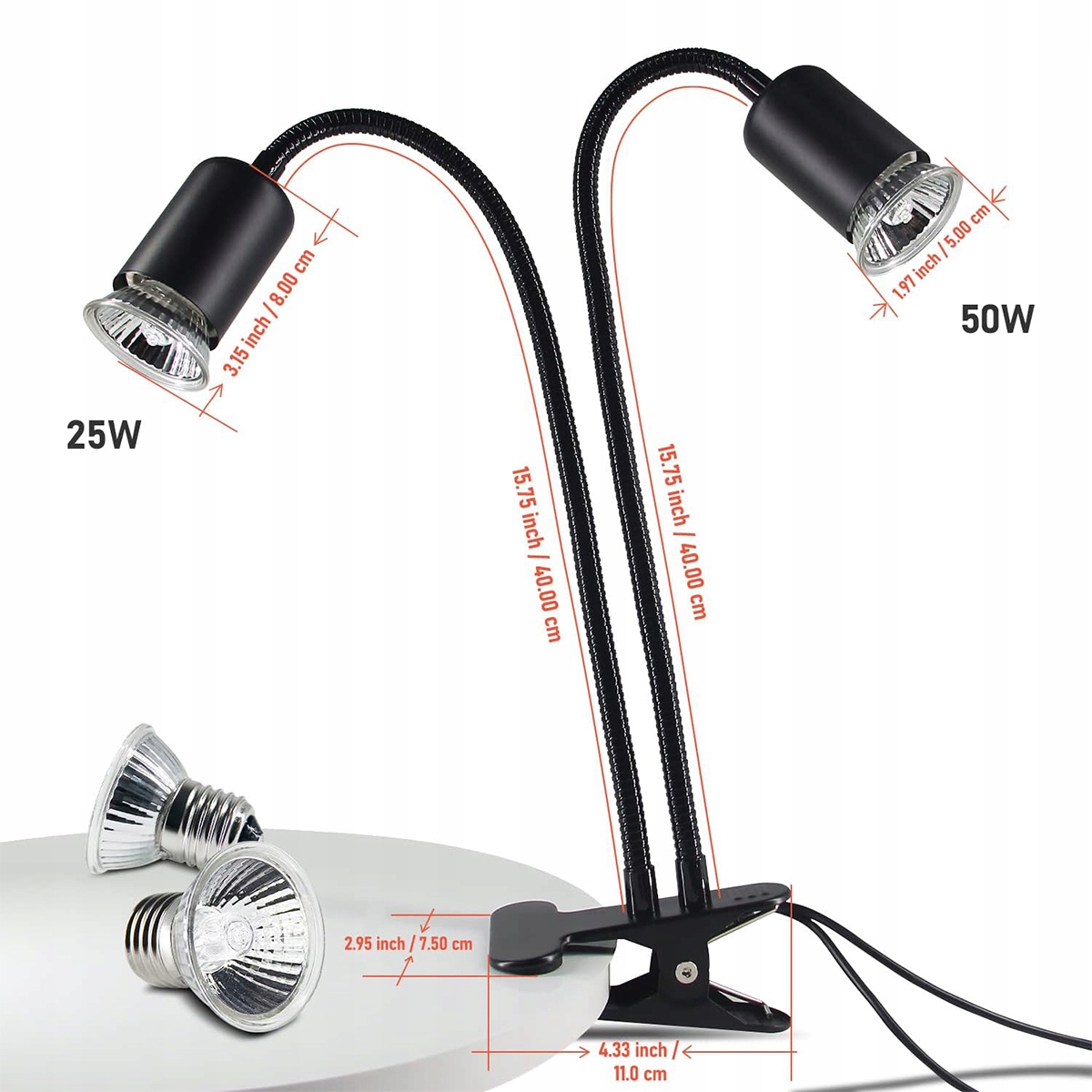 ДВОЙНАЯ НАГРЕВАТЕЛЬНАЯ ЛАМПОЧКА ДЛЯ РЕПТИЛИИ, НАГРЕВАТЕЛЬНАЯ ЛАМПОЧКА E27 С 2-мя ЛАМПОЧКАМИ 25Вт 50Вт