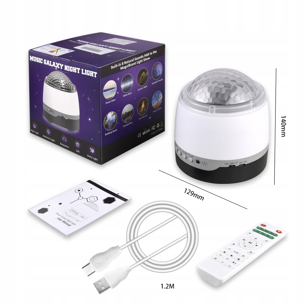 - Функция: 3 режима освещения, динамик Bluetooth, регулировка яркости, таймер, 8 естественных режимов. звуки