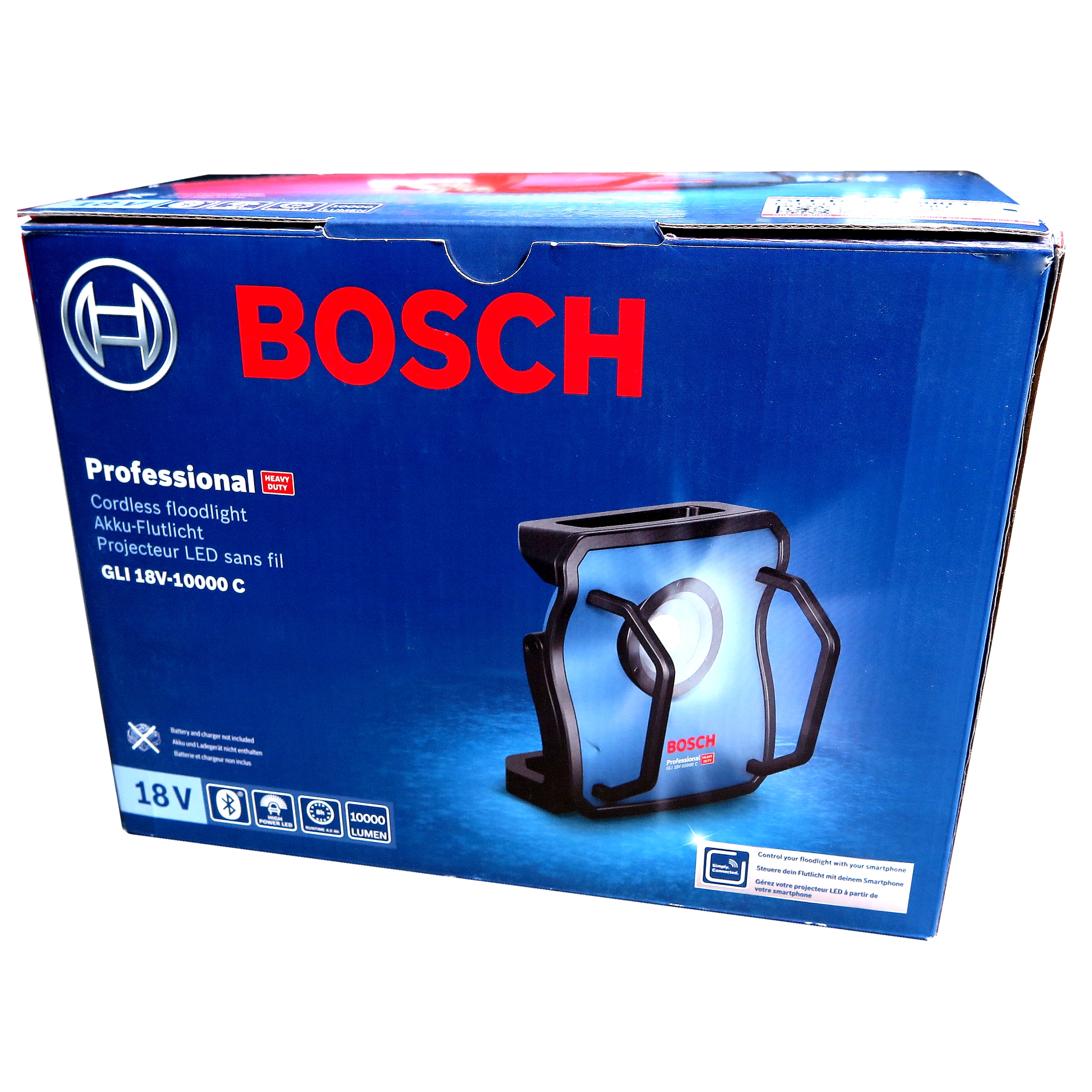 GLI 18V-10000 C Professional — первый строительный прожектор такого типа от Bosch в предложении на 18 В. Эффективный светодиод впечатляет превосходной яркостью до 10 000 люмен. даже ярче, чем галогенные прожекторы, конструкция работает с мощностью 500 Вт. Прожектор чрезвычайно долговечен благодаря прочному металлическому корпусу, покрытому амортизирующей резиновой рамкой, и прочному защитному кронштейну. Он имеет как пользовательский интерфейс с индикатором яркости и состояния заряда, так и модуль подключения Bluetooth, позволяющий удобно дистанционно управлять и настраивать освещение с помощью MyTools в приложении Toolbox. Он имеет три уровня яркости, гибкий угол регулировки и резьбу для штатива 5/8", что позволяет быстро адаптировать его к любой рабочей ситуации. Этот строительный прожектор идеально подходит для освещения целых рабочих зон. Устройство работает со всеми Bosch Professional 18В. аккумуляторы и зарядные устройства (профессиональная система 18 В). Также совместимы с AMPShare.
