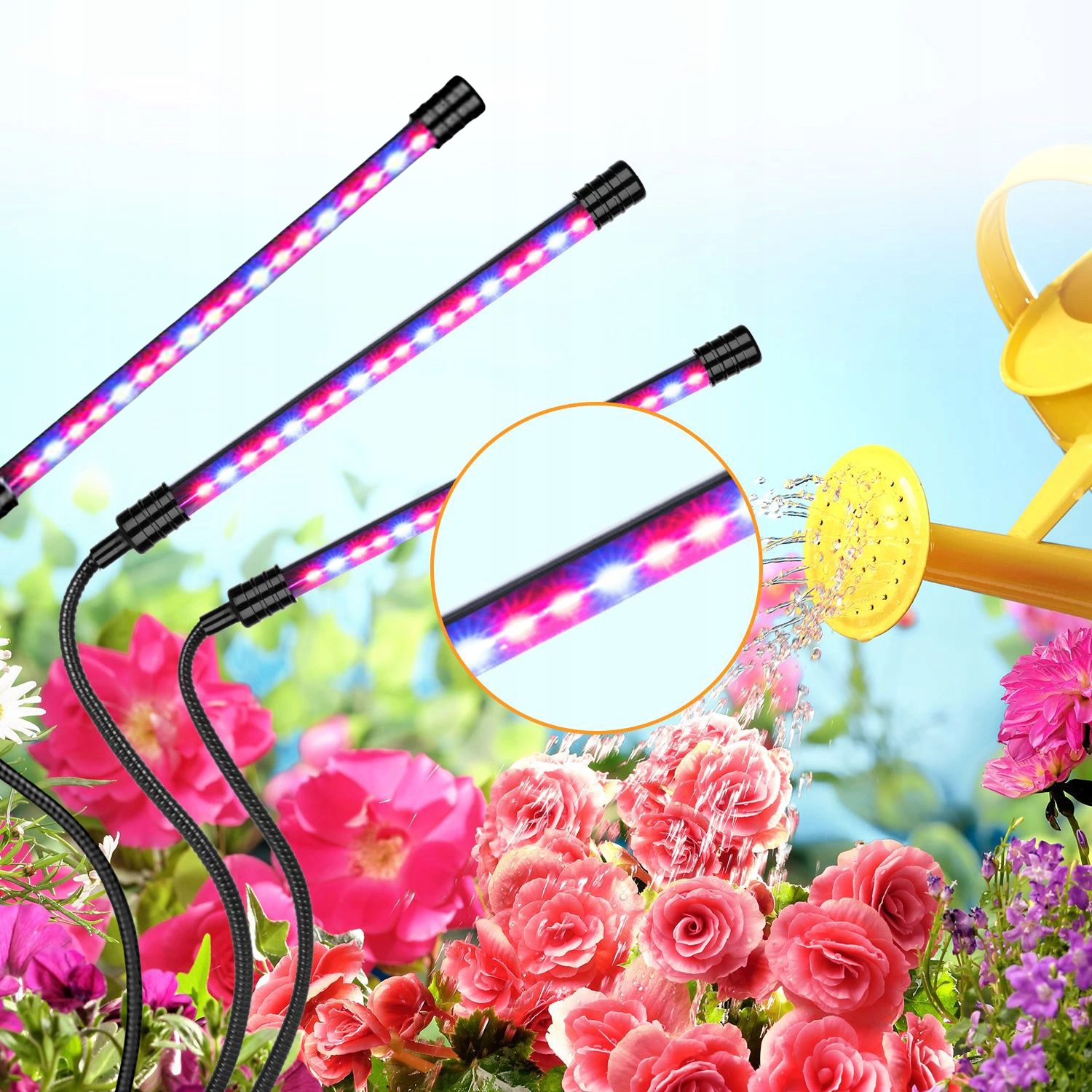 Специализированная лампа для поддержки и поддержки растений. Оснащенная полосой со светодиодами в двух цветах: красное и синее, с общей мощностью 30 Вт производит 3 типа легких волн (красный, синий, пупрюроу) с различной длиной для поддержки двух ключевых процессов в сельском хозяйстве растений: фотосинтез и фотопериодизм. Работа лампы способствует надлежащему питанию растений и контролю соответствующих биологических часов.