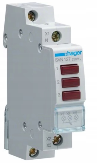 Сигнальная лампа Hager SVN127 3 цвета – прибор, полезный в каждом доме и на промышленном объекте. Служит для оптической сигнализации напряжения в сети путем свечения светодиодной лампы, включенной в цепи заданной фазы. Благодаря этому он эффективно информирует об активности и работе электроустановки. Тройная сигнальная лампа 3 цвета Hager имеет 3 фазы и 3 красных светодиода, которые показывают наличие напряжения в каждой фазе. Прибор питается от сети 230В, мощность источников света может достигать 2,4 Вт. Прочная конструкция и высокая эксплуатационная устойчивость в перепадах температур от -20°С до +50°С обеспечивают долговечную и безотказную эксплуатацию. Модульный сигнальный светильник имеет класс защиты IP20, а возможность установки на DIN-рейку с помощью прижимных винтов существенно упрощает его монтаж. Он хорошо будет работать в качестве устройства управления электроустановками как в домашних условиях, так и в промышленности и строительстве.