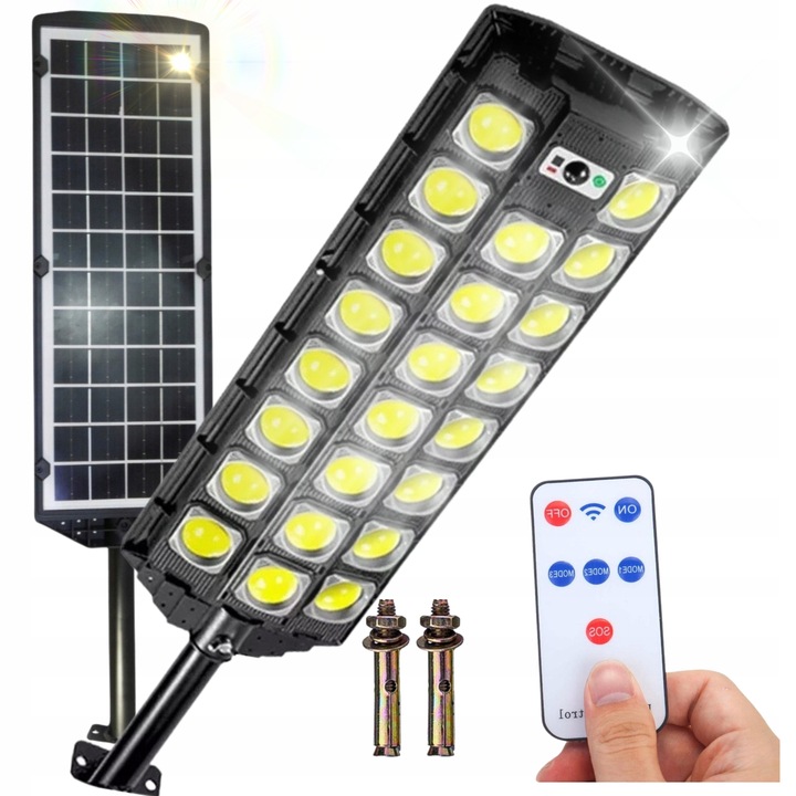 LAMPA SOLARNA 2500W CZUJNIK RUCHU ZMIERZCHU OGRODOWA LATARNIA + PILOT