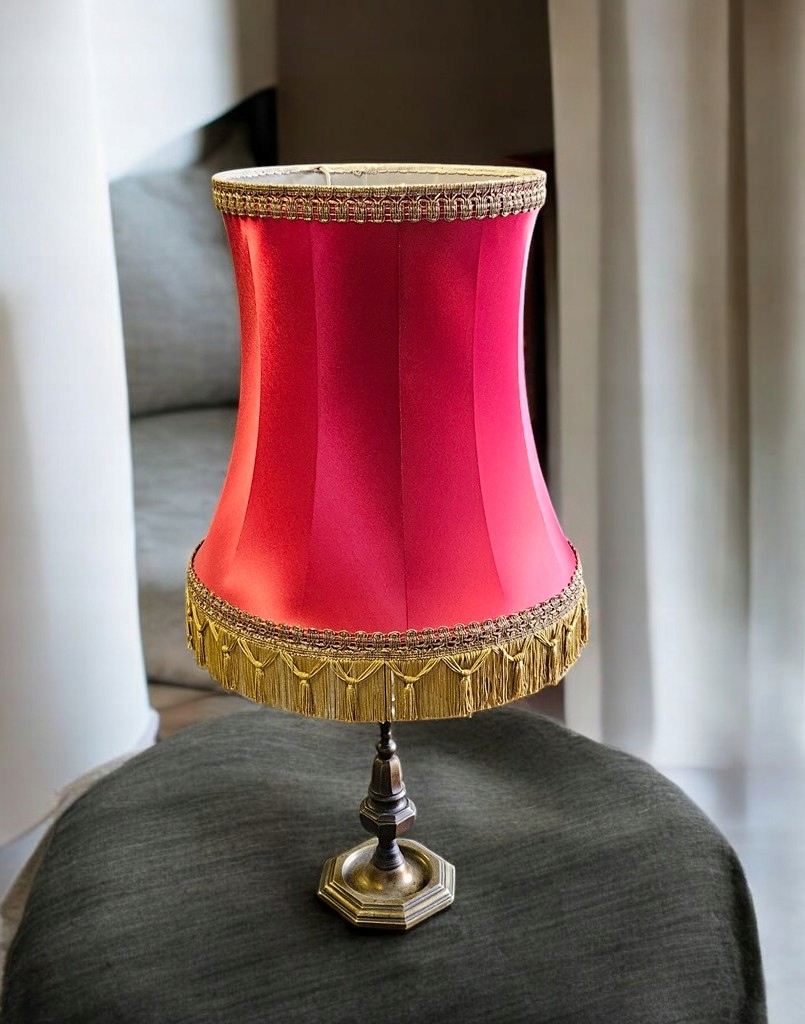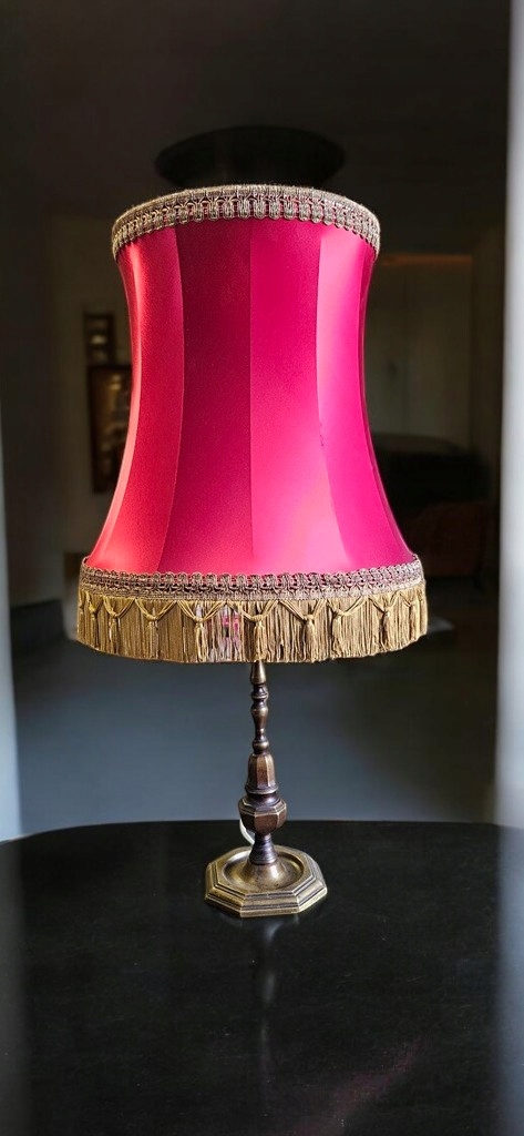 Светильник использован - ножка изготовлена из латуни. Состояние лампы хорошее; абажур тоже в хорошем состоянии.