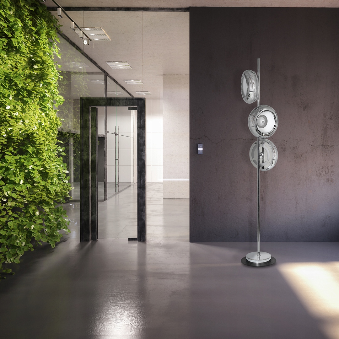 "Торшер из коллекции Mercurio оснащен 3 источниками света со сменными светодиодными модулями мощностью 36 Вт. Его высота составляет 157,5 см, а диаметр каждого светового элемента - 24 см. Лампа также характеризуется приятным для глаз нейтральным цветом света и ярким световым потоком – 2520 лм. Использование светодиодной технологии позволяет снизить затраты на электроэнергию без ущерба для качества источника света. Светильник изготовлен из высококачественных материалов: металла и акрила.