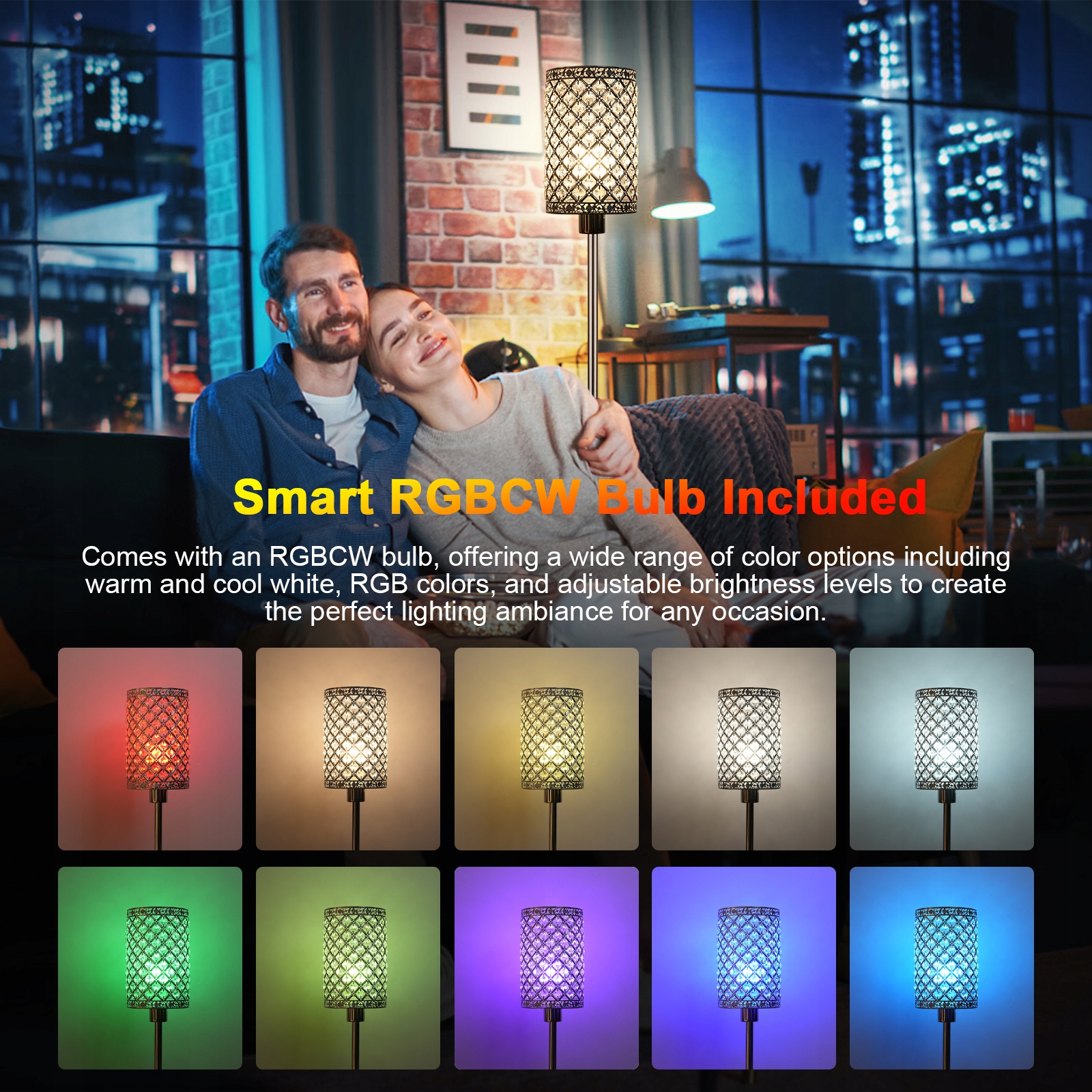 LAMPA STOJĄCA PODŁOGOWA INTELIGENTNA LED RGB ABAŻUR SALON SYPIALNIA 164CM