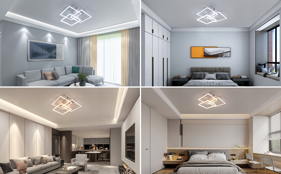 Современный потолочный светильник с 2 светодиодными рамками и 1 светодиодным световым модулем, светодиодная рамка для установки, больше возможностей крепления потолочного светильника.