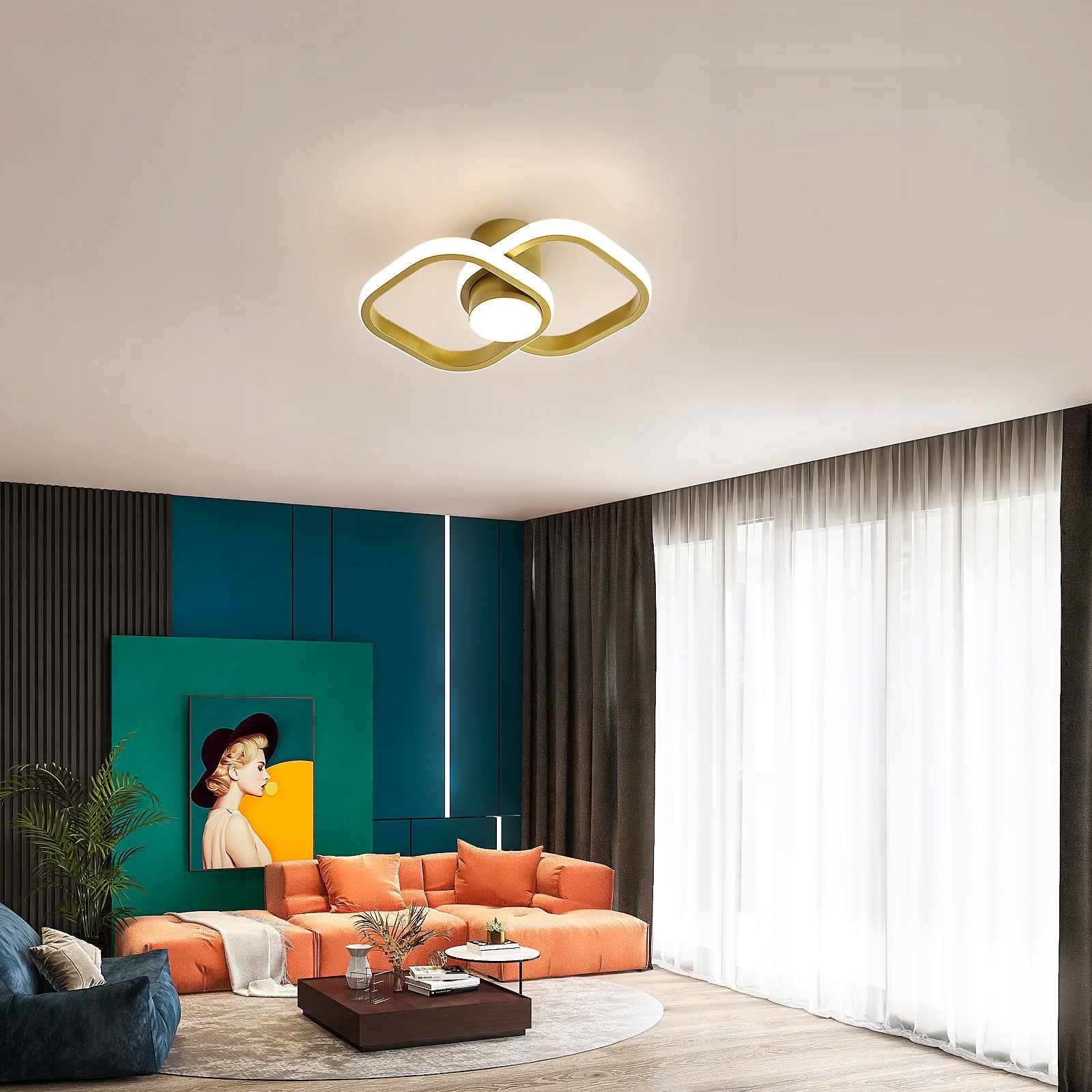 Фигура, состоящая из двух круглых квадратов. Светодиодный потолочный светильник полон современной моды, с золотыми краями, элегантный и простой. Мягкий белый свет для вас и вашей семьи во время чтения и других занятий.