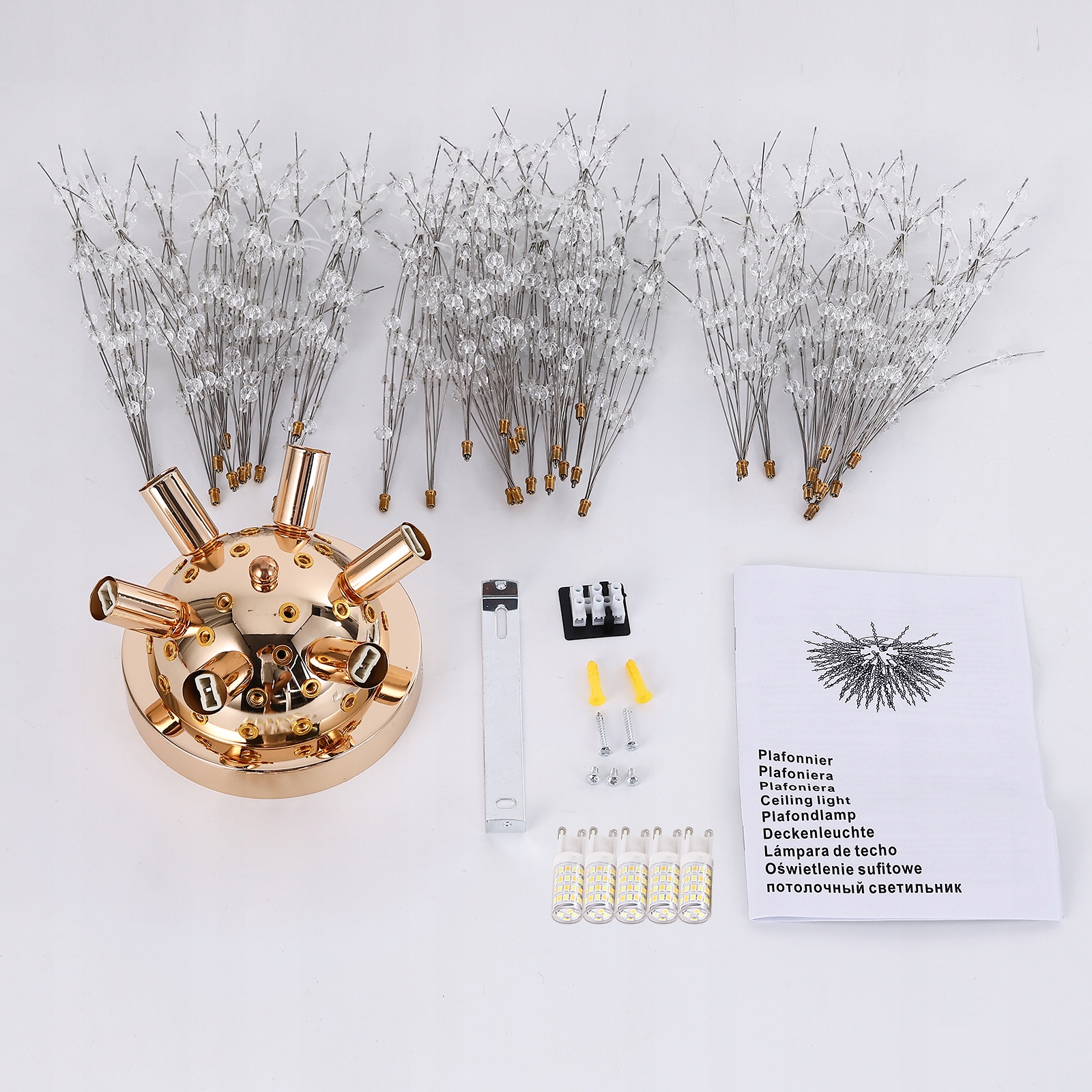 Потолочный светильник-люстра напоминает фейерверк. Кристаллы K9, встроенные в этот потолочный светильник-фейерверк, излучают солнечный свет и тени в диапазоне 360°. Эта хрустальная люстра принесет в ваш дом теплый и главный свет.