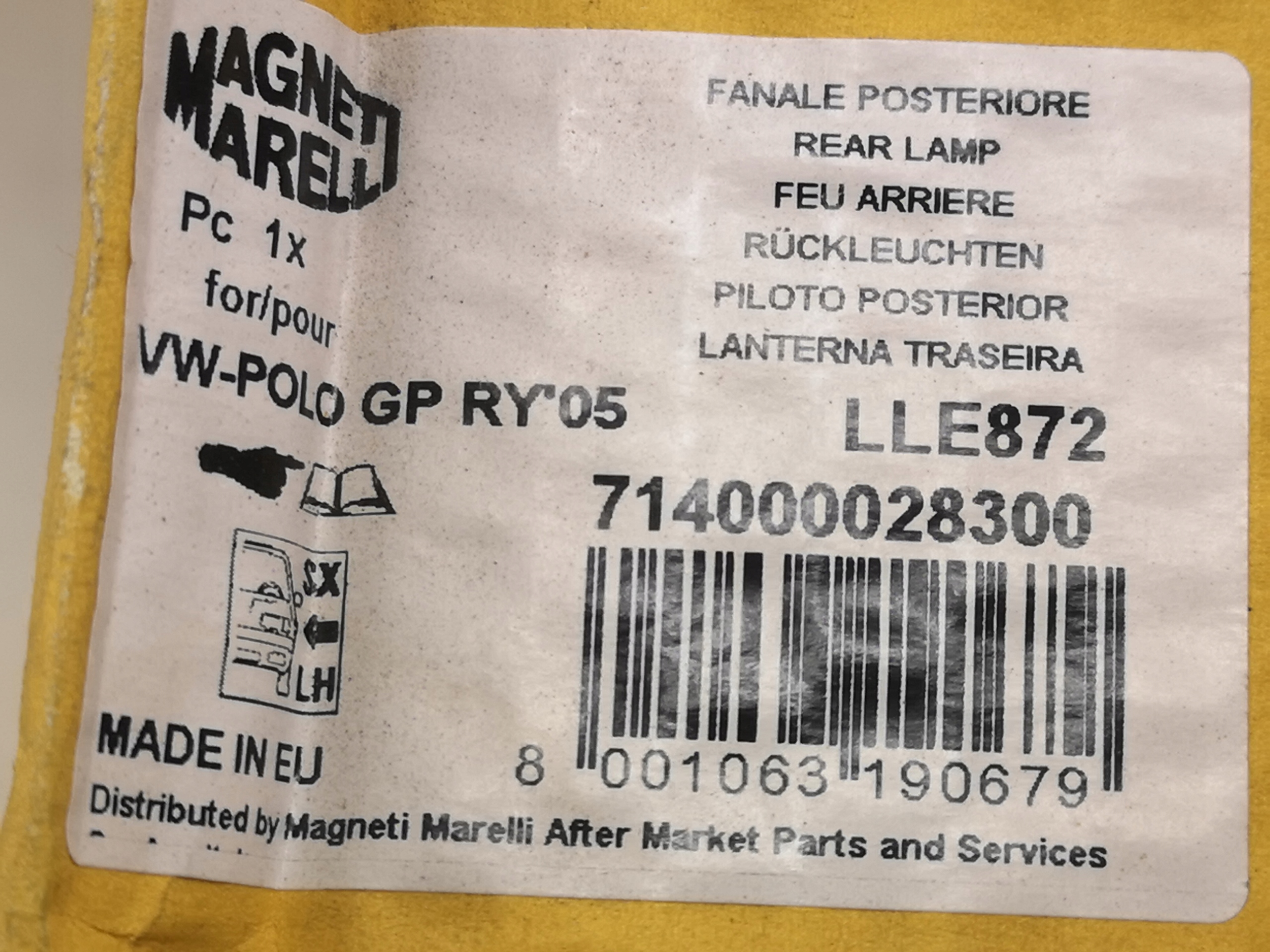 ЛАМПА ЗАДНЯ ЛІВА VOLKSWAGEN POLO ...-2009 NEW MAGNETI LLE872 / 6Q6945095L