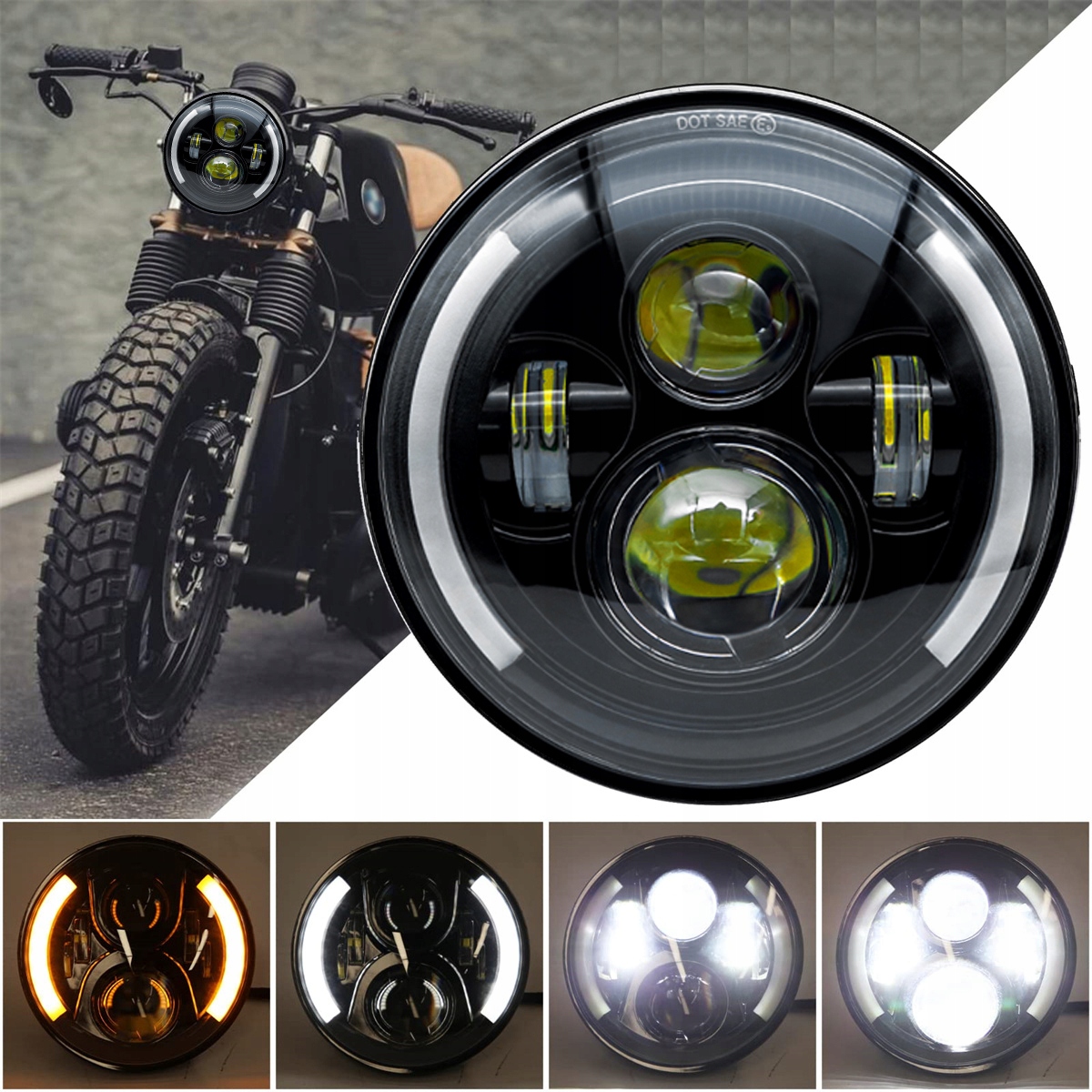 Подходит для всех моделей мотоциклов с круглой 7-дюймовой фарой, например: