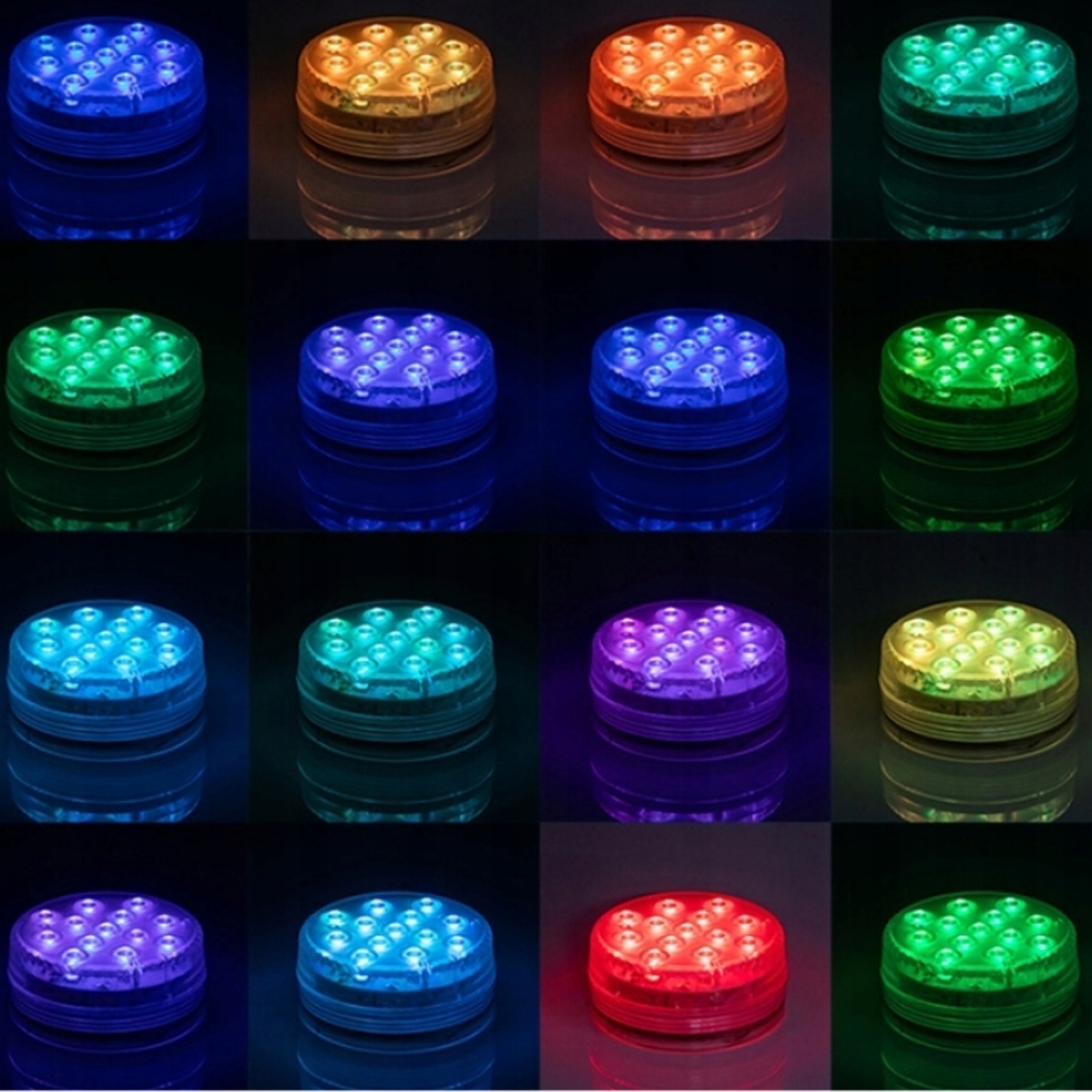Водонепроницаемые огни на основе RGB, свет можно изменить на 16 цветов, доступны 4 световых режима. 4 Динамические режимы изменения цвета, нажмите кнопку «Цветовой» на пульте дистанционного управления, чтобы выбрать цвет, подводные светодиодные фонари имеют динамическое изменение цвета, обеспечивают немедленное и фантастическое впечатление освещения.