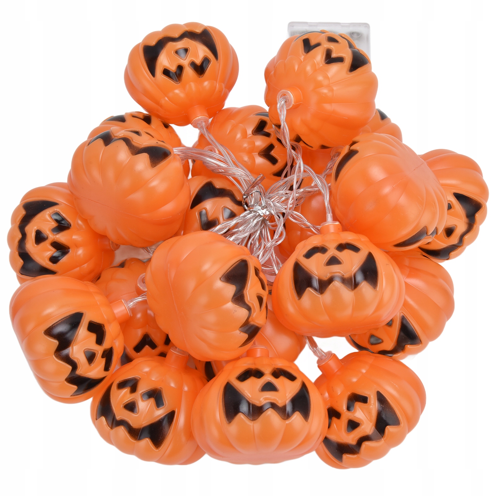 легкая гирлянда, состоящая из дюжины или около того веселых тыкв, соединенных серией с прозрачным кабелем, как от ламп рождественских деревьев - отличная идея для дермора Хэллоуина!
