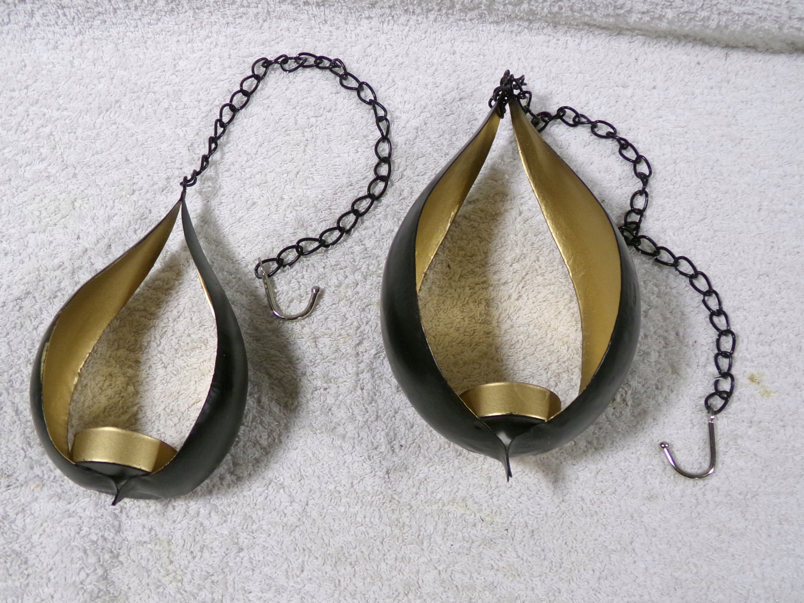 2 металлических фонаря размером 20х9,5 и 15х8 см, вес 0,15 кг. В очень хорошем состоянии, без повреждений.