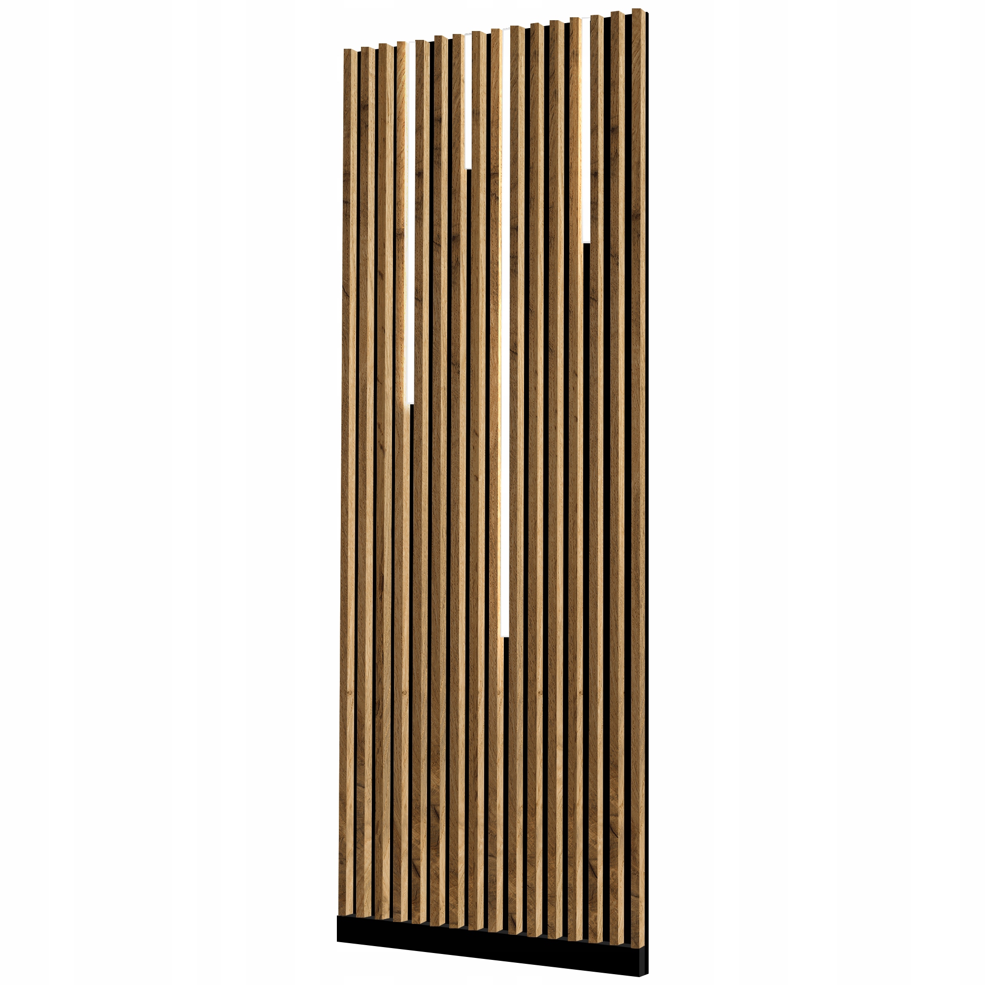 - Одним из элементов предлагаемой композиции является цоколь высотой 8 см. Он позволяет элегантно разделить пространство между стеновыми планками и полом. Плинтус выполняет как декоративную, так и практическую функцию – покупателю не нужно беспокоиться о подборе подходящего плинтуса, а также он служит маскирующим элементом для блоков питания и контроллеров.