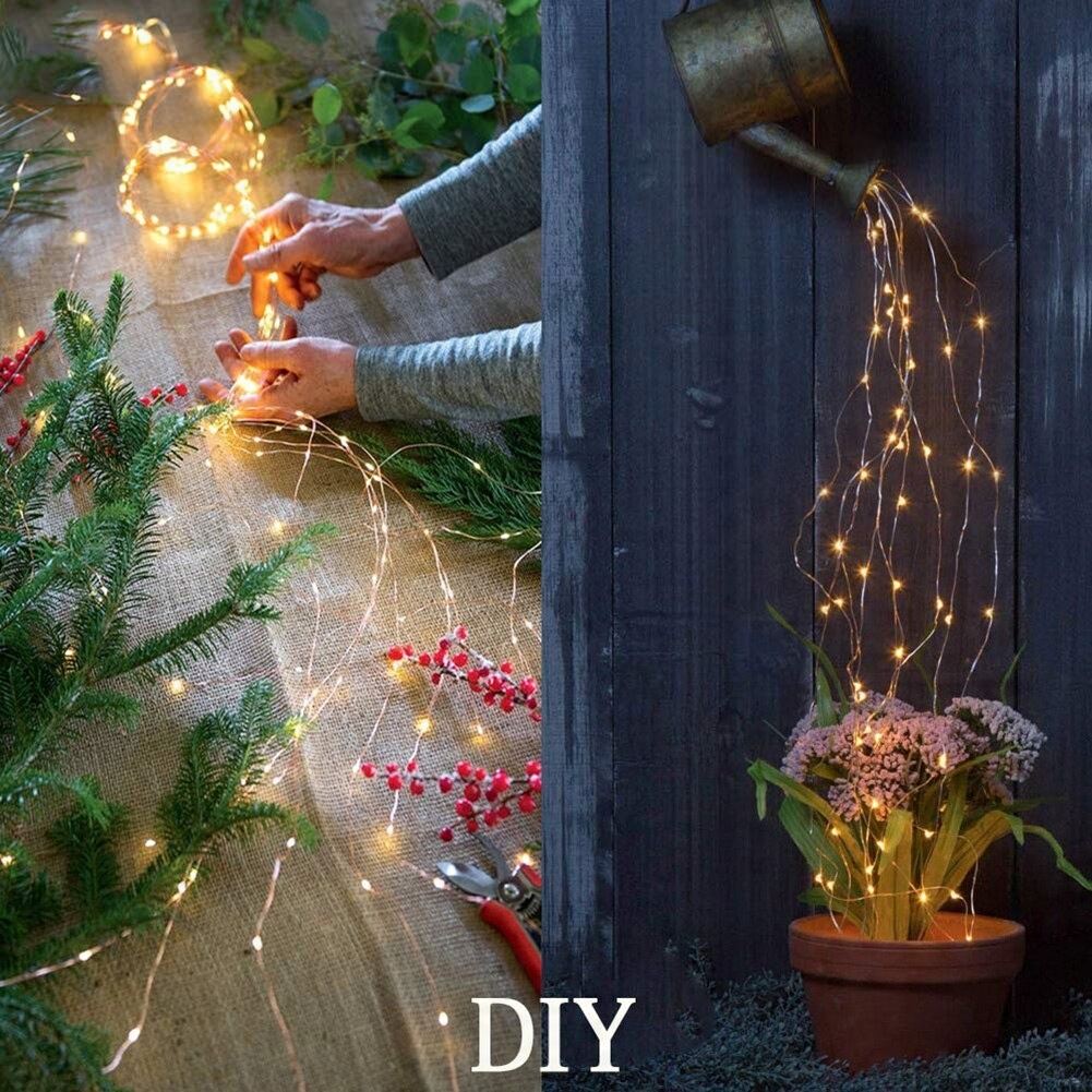 MICRO LED 200 Идеально подходит для рождественских елок, деревьев и дизайна интерьера, поскольку состоит из 10 линий, идущих из одного места, каждая линия имеет длину 2 метра и питается от СОЛНЕЧНОЙ ПАНЕЛИ