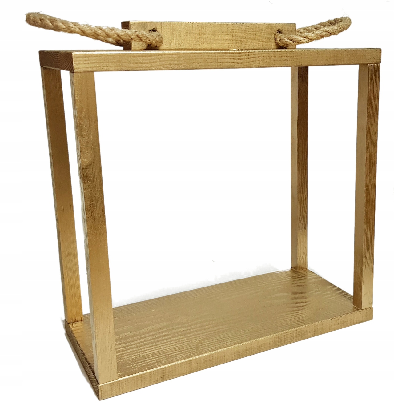 Фонарь изготовлен из дерева и окрашен в изящный, слегка цвет блестящий золотистый.