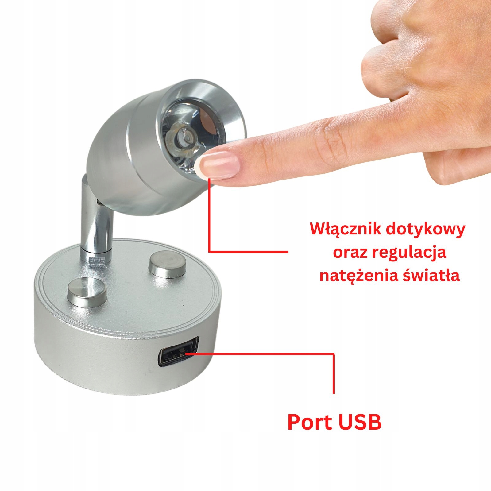 Lampka Kinkiet LED12V 24V do Czytania Wewnętrzna Kamper Przyczepa Chrom USB