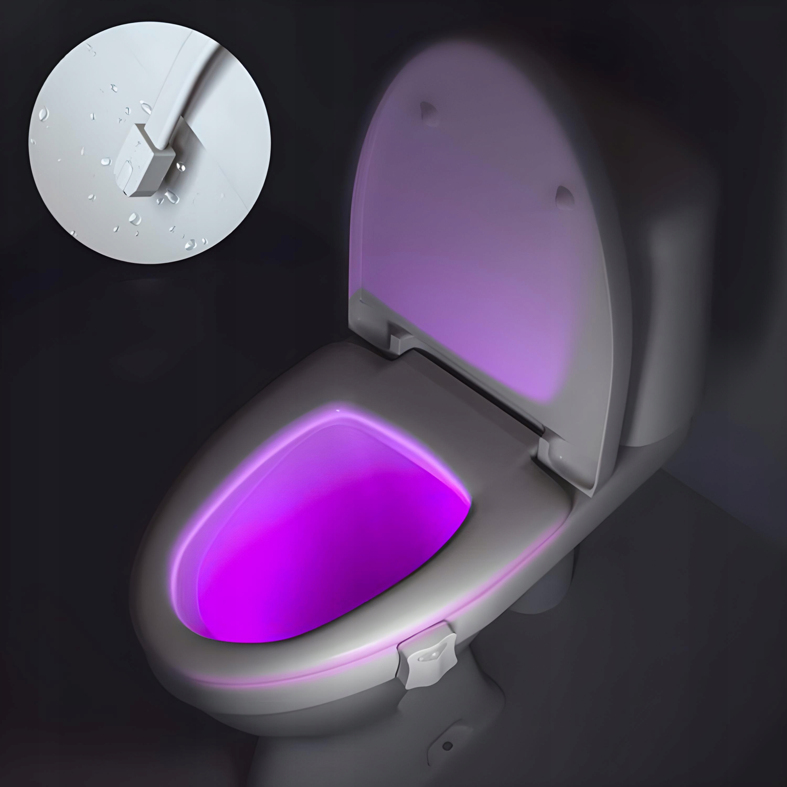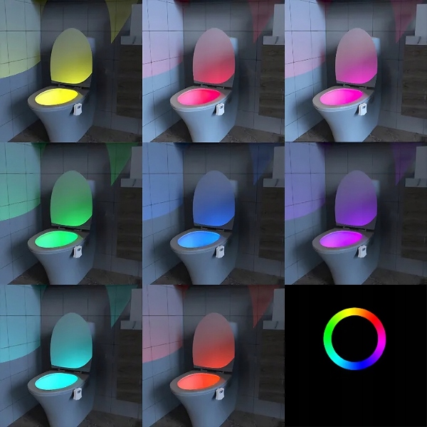 LAMPKA LED KOLOROWA DO WC TOALETY Z CZUJNIKIEM RUCHU i ŚWIATŁA ZMIERZCHU