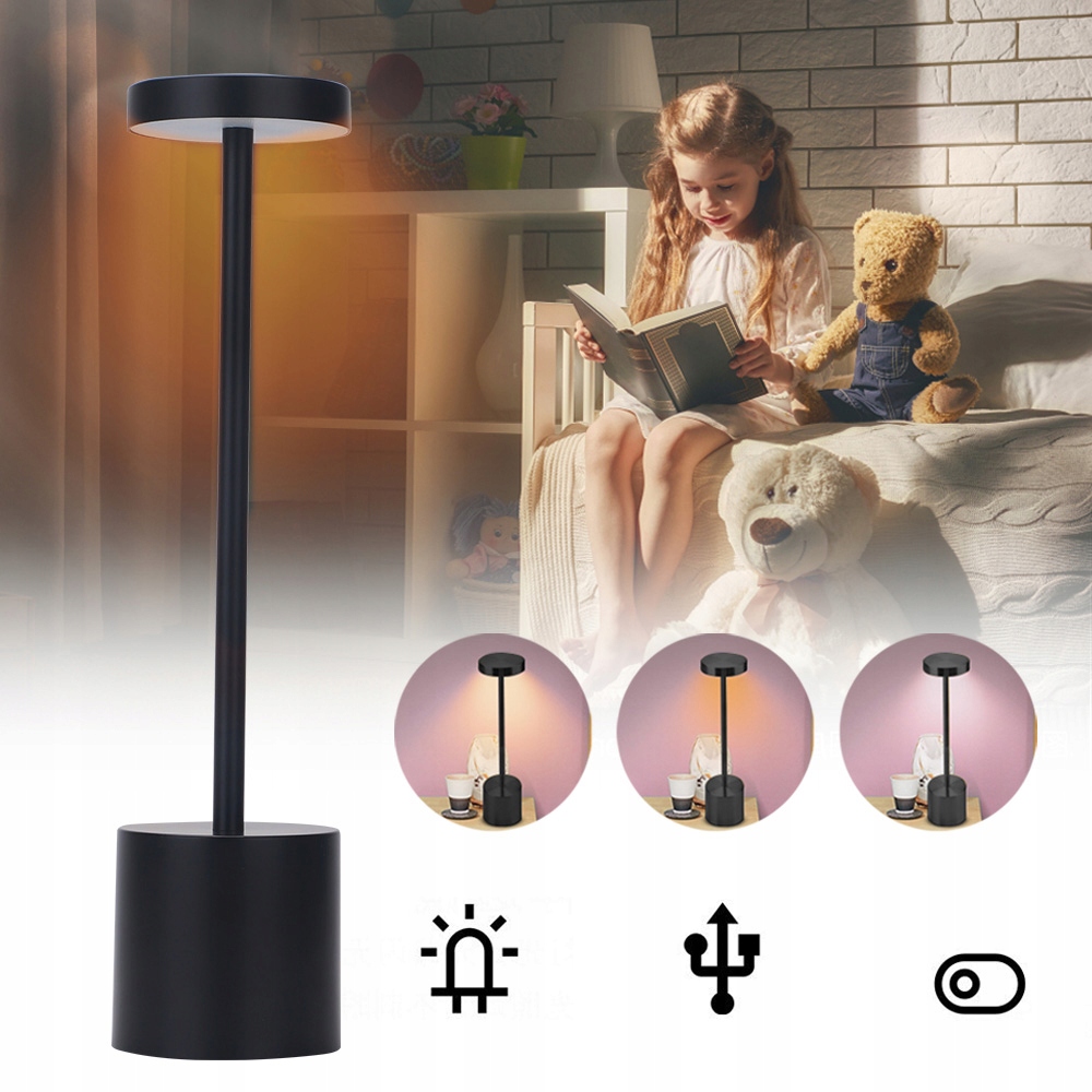 LAMPKA STOŁOWA BIURKOWA NOCNA LED BEZPRZEWODOWA DOTYKOWA CZARNY 3 TRYBY