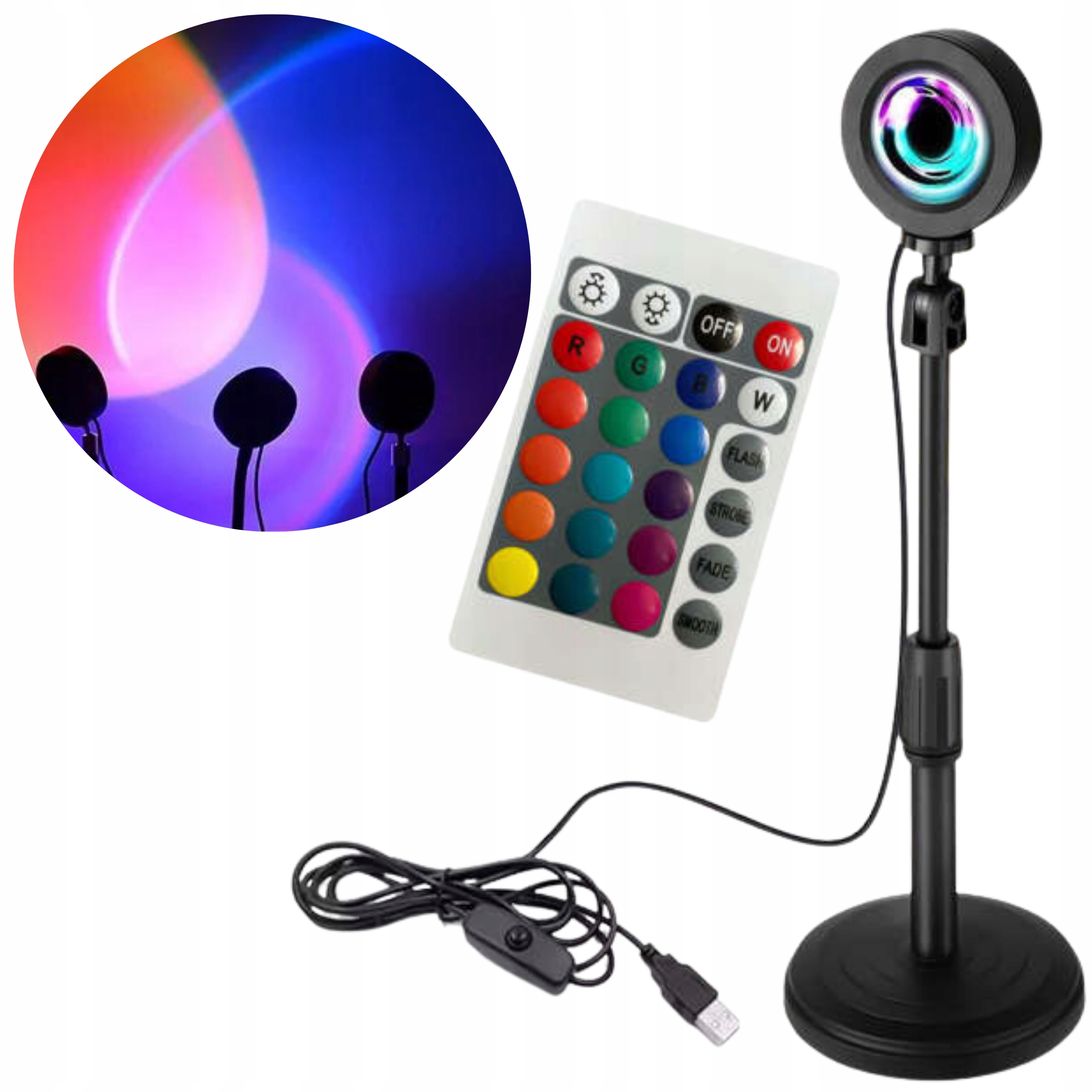LAMPKA ZACHÓD SŁOŃCA RGB LED REGULACJA WYSOKOŚĆ 16 KOLORÓW 4 TRYBY MRUGANIA