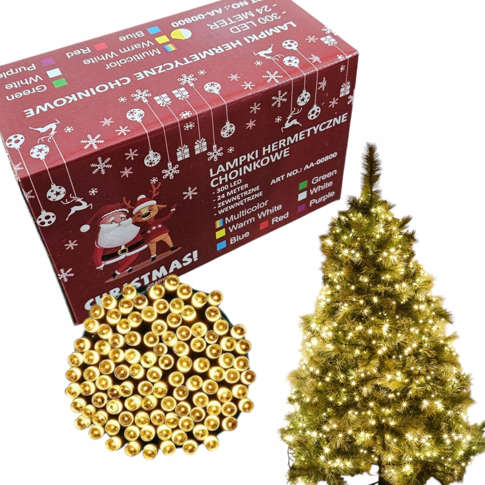 LAMPKI CHOINKOWE 300 LED BIAŁE CIEPŁE świąteczne na choinkę PROGRAMATOR