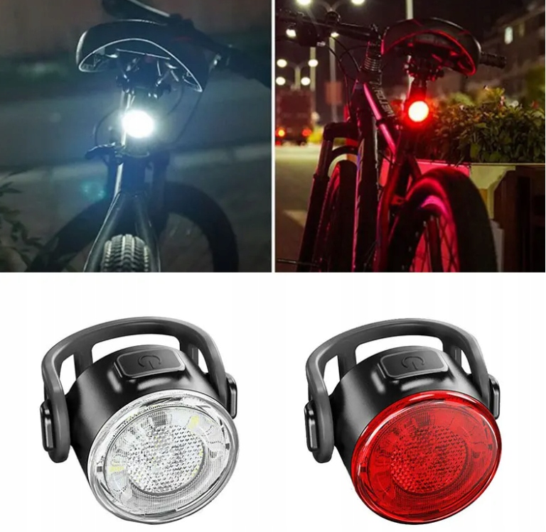 LAMPKI ROWEROWE OŚWIETLENIE LATARKA PRZÓD TYŁ LED ŚWIATŁA ROWEROWE USB MOC